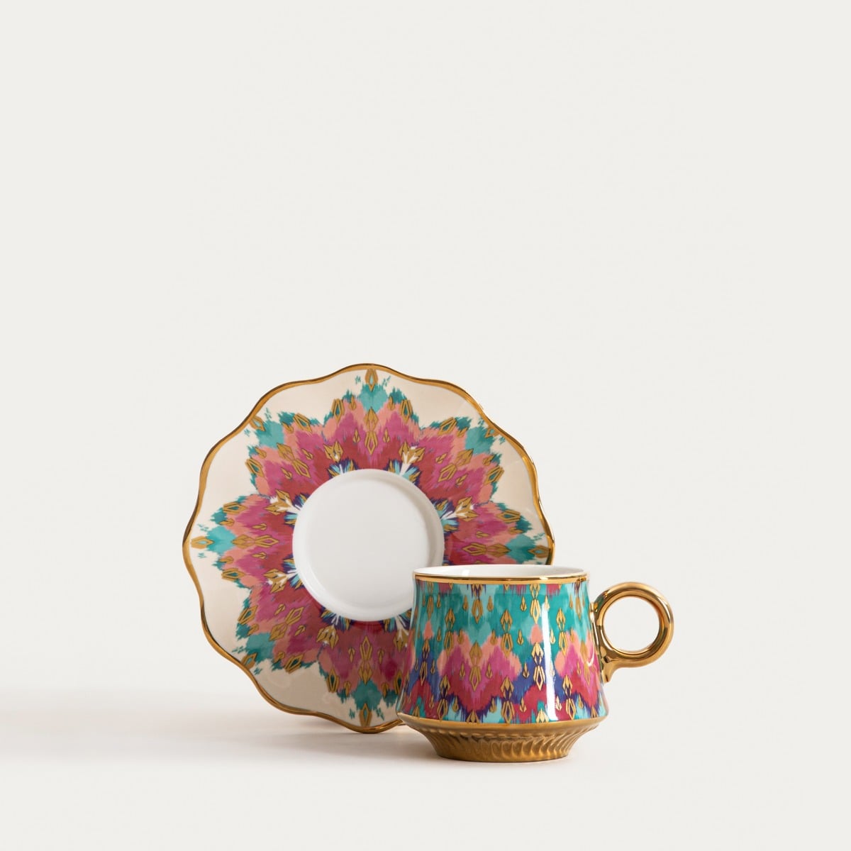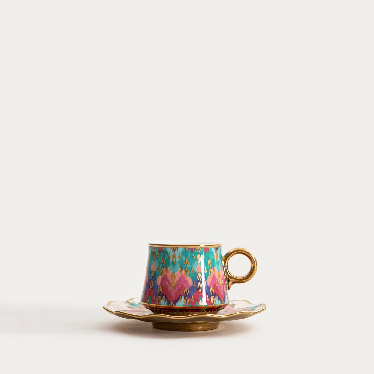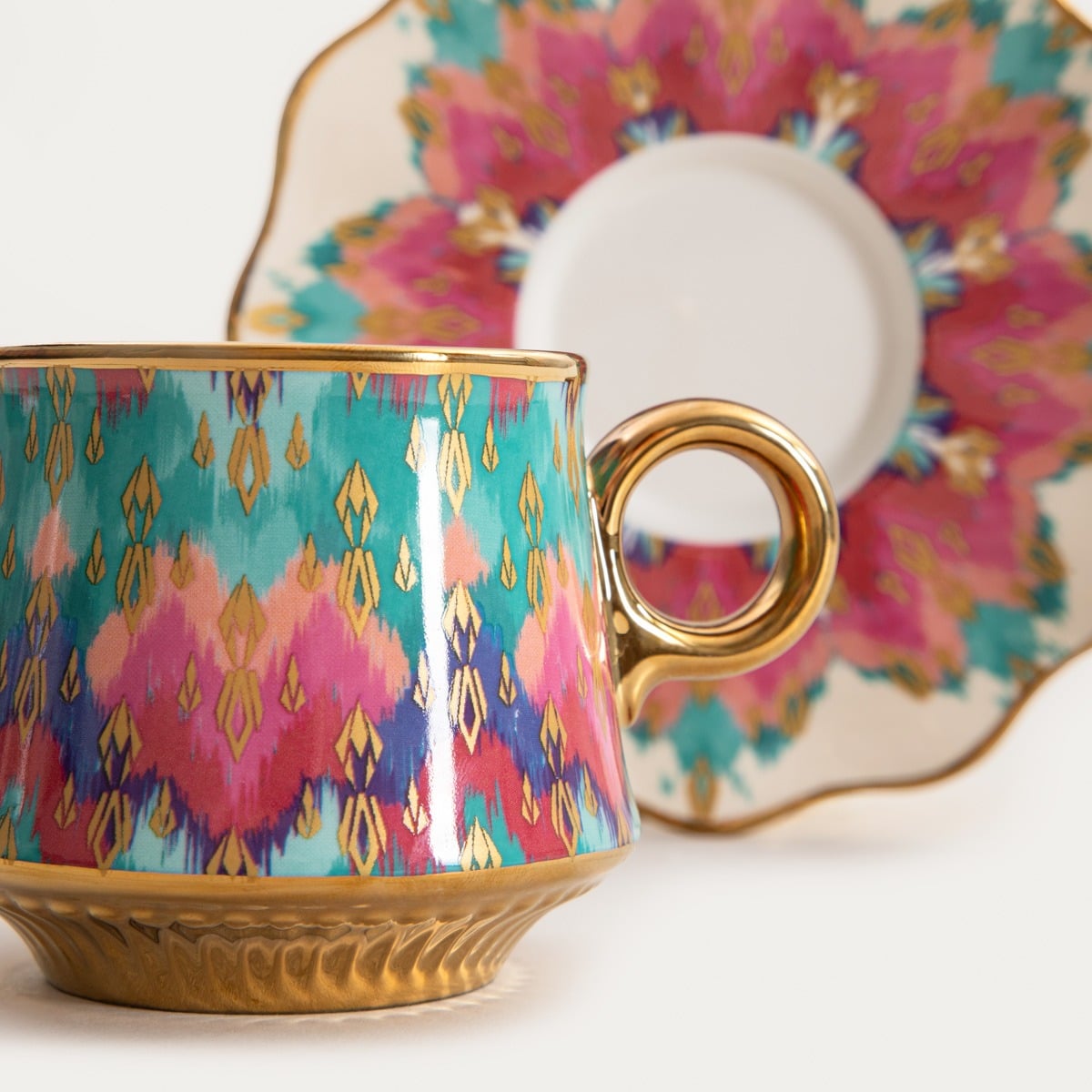 Чашка BOGLI — это уникальное сочетание классической формы и декоративного, художественного дизайна. Богатый разноцветный орнамент, вдохновленный этническими мотивами, притягивает взгляд и придает всей чашке неповторимый характер. Позолоченные детали, включая элегантное ушко и отделку блюдца, подчеркивают роскошный стиль чашки, делая ее ярким элементом любой сервировки стола.