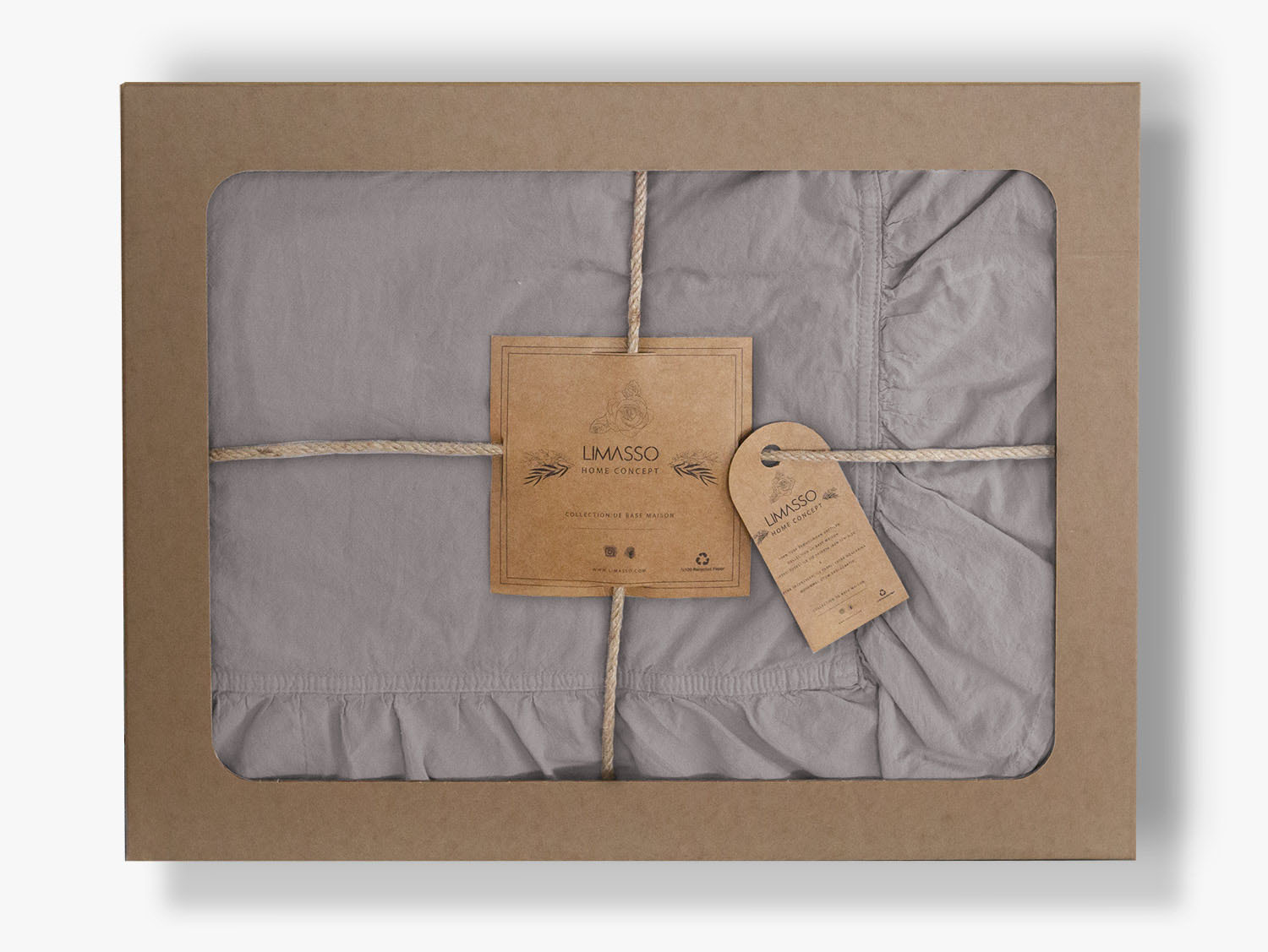 Комплекты постельного белья изготовлены из 100% хлопка высшего качества. Ткань нежная и мягкая на ощупь. Постельное белье сшито очень элегантным способом с оборкой и отделано двойной строчкой. Пододеяльник застегивается на пуговицы, а наволочки имеют нахлест. Весь комплект упакован в эко-коробку. Комплекты постельного белья изготовлены из сертифицированных тканей.