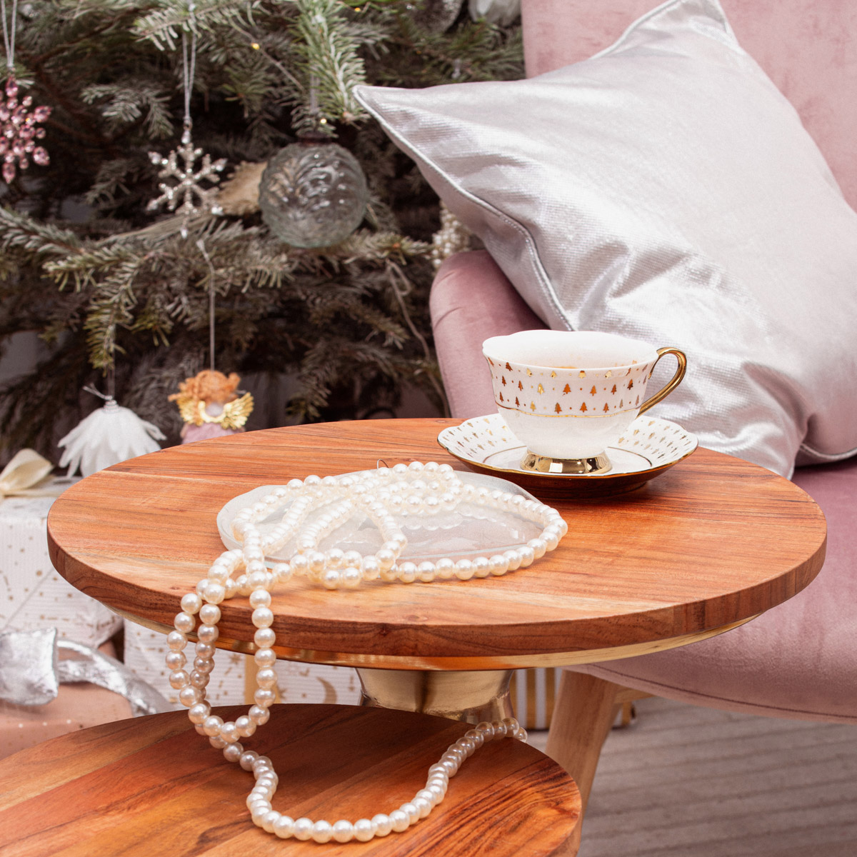 • Нежный праздничный дизайн с золотыми елочками