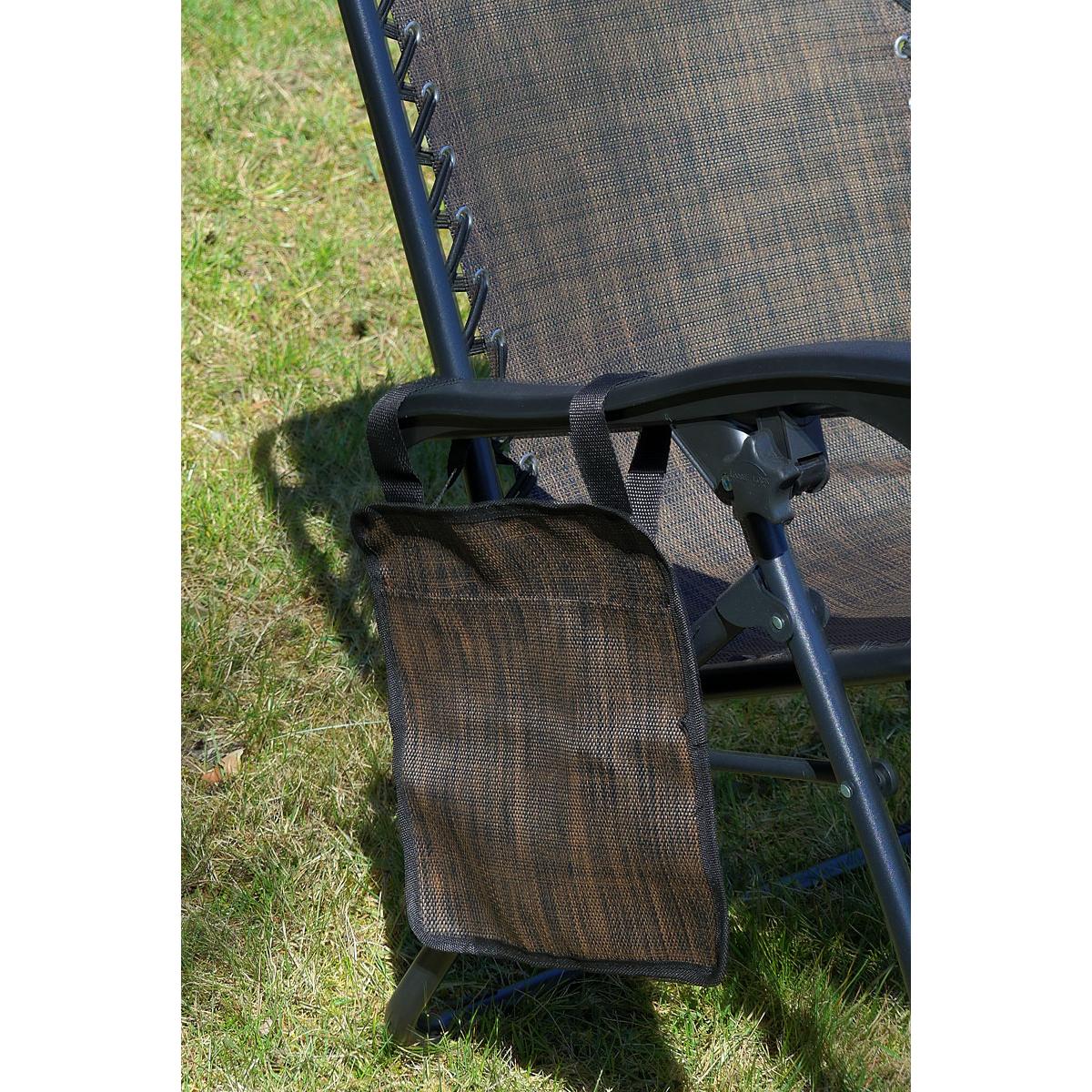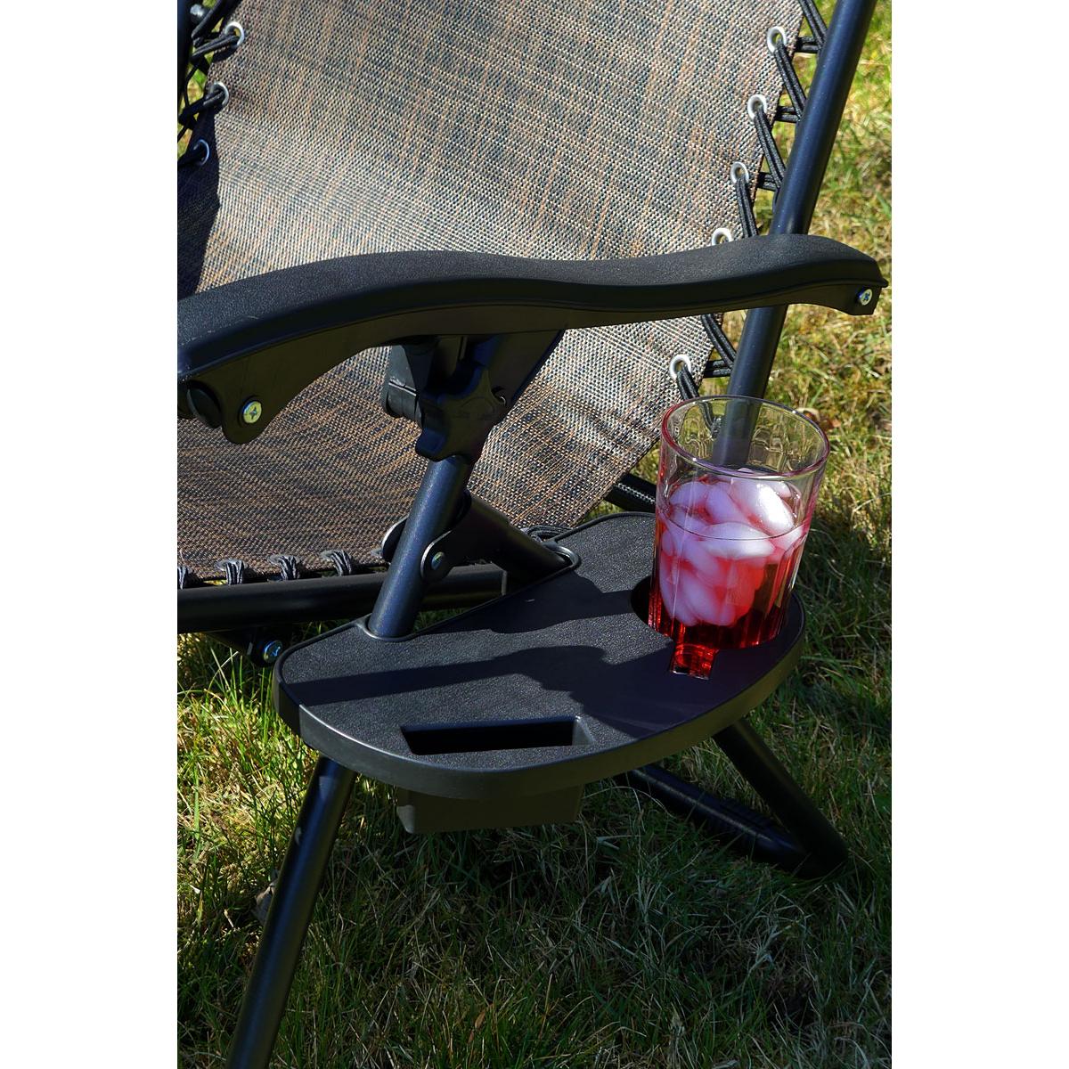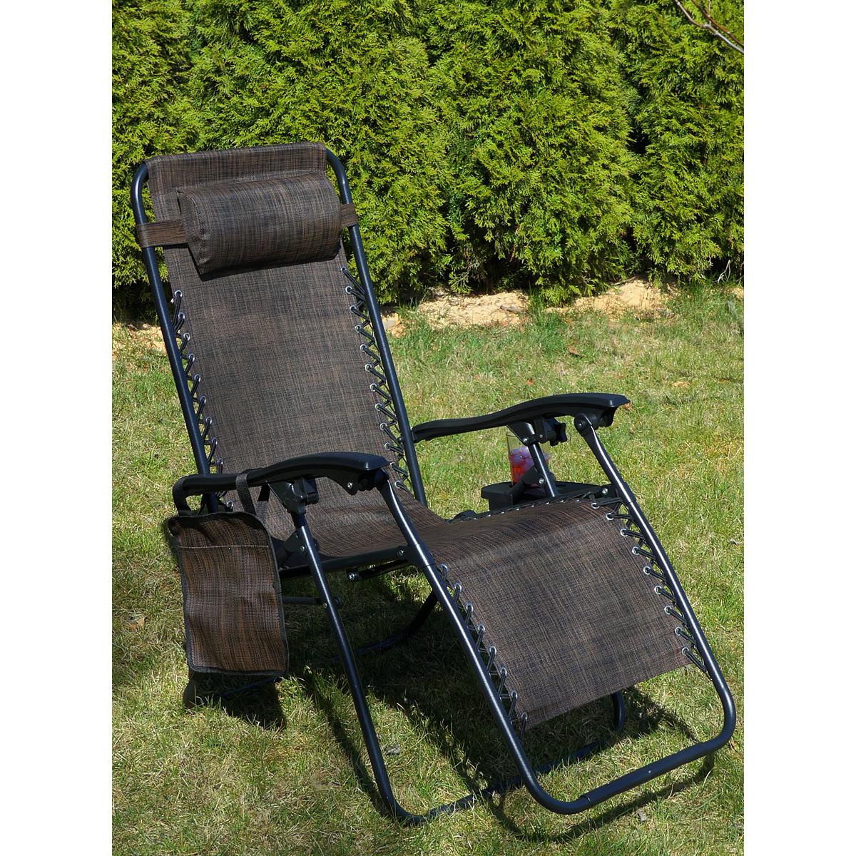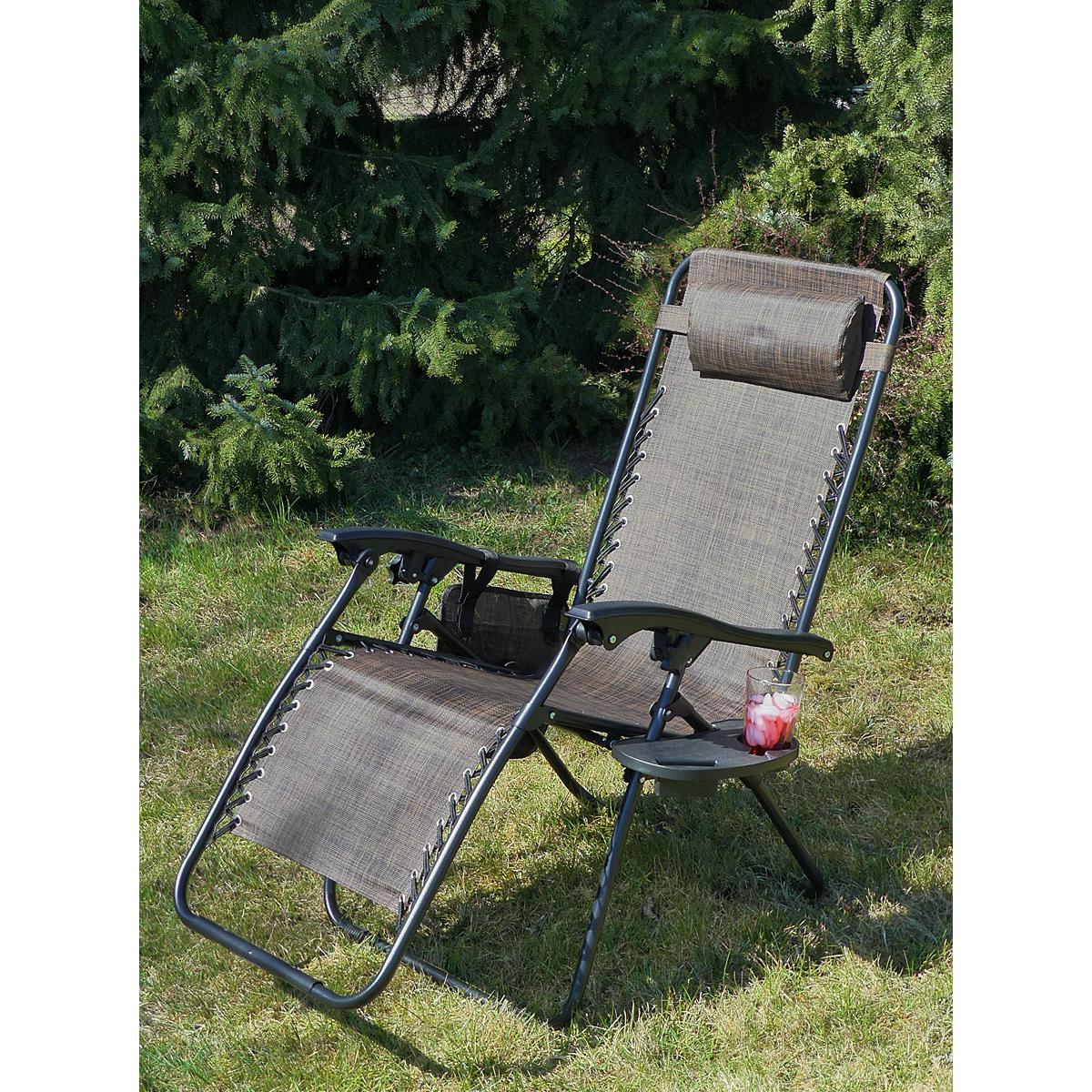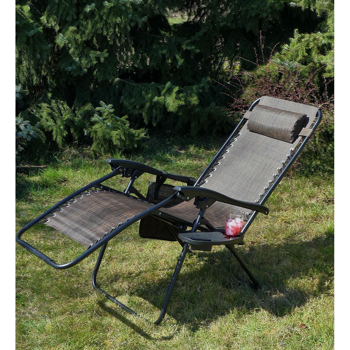 Мягкий подголовник позволит вам удобно положить на него голову и принять комфортное положение лежа. Боковой карман обеспечит постоянный доступ к газете или любимой книге, а столик позволит поставить чашку с кофе, сок или телефон. Каркас кресла изготовлен из прочных и долговечных стальных труб и выдерживает нагрузку до 120 кг!