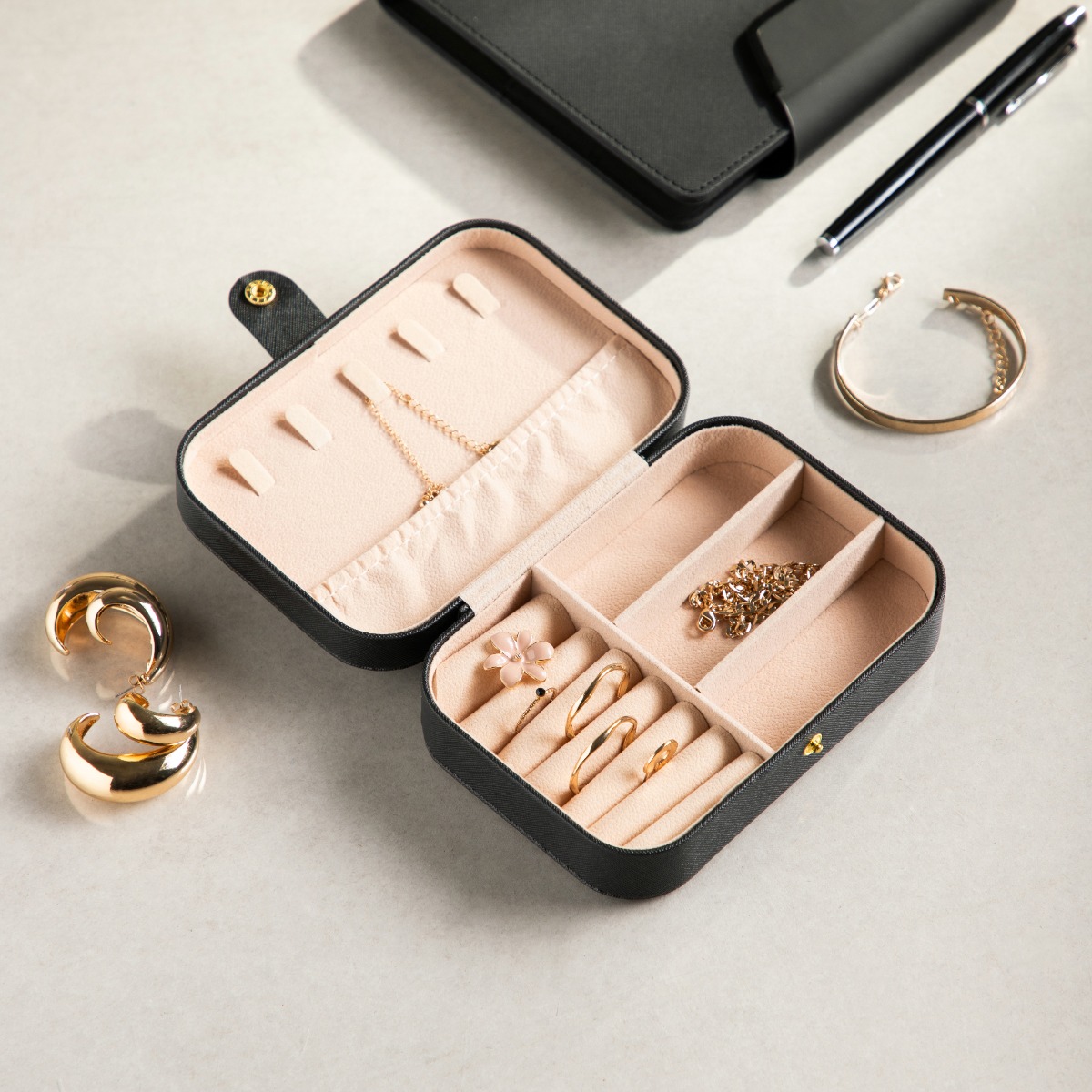 Шкатулка идеально подходит для хранения колец, серег, цепочек и других безделушек. Идеально подходит для использования дома или в путешествиях, помогает поддерживать порядок и защищает украшения от повреждений.