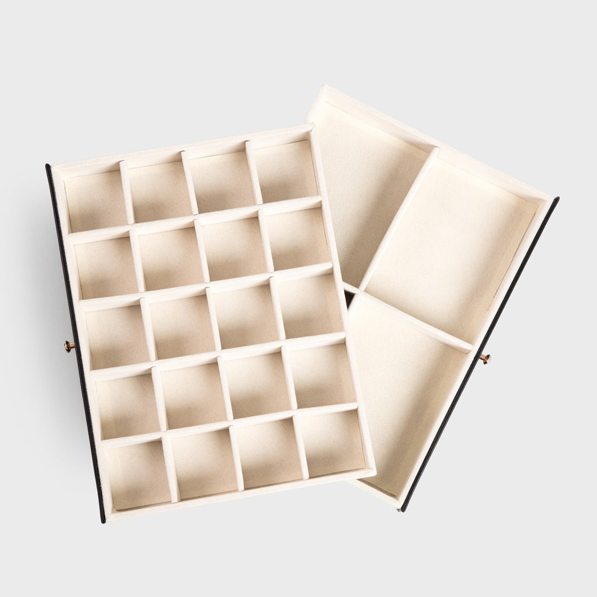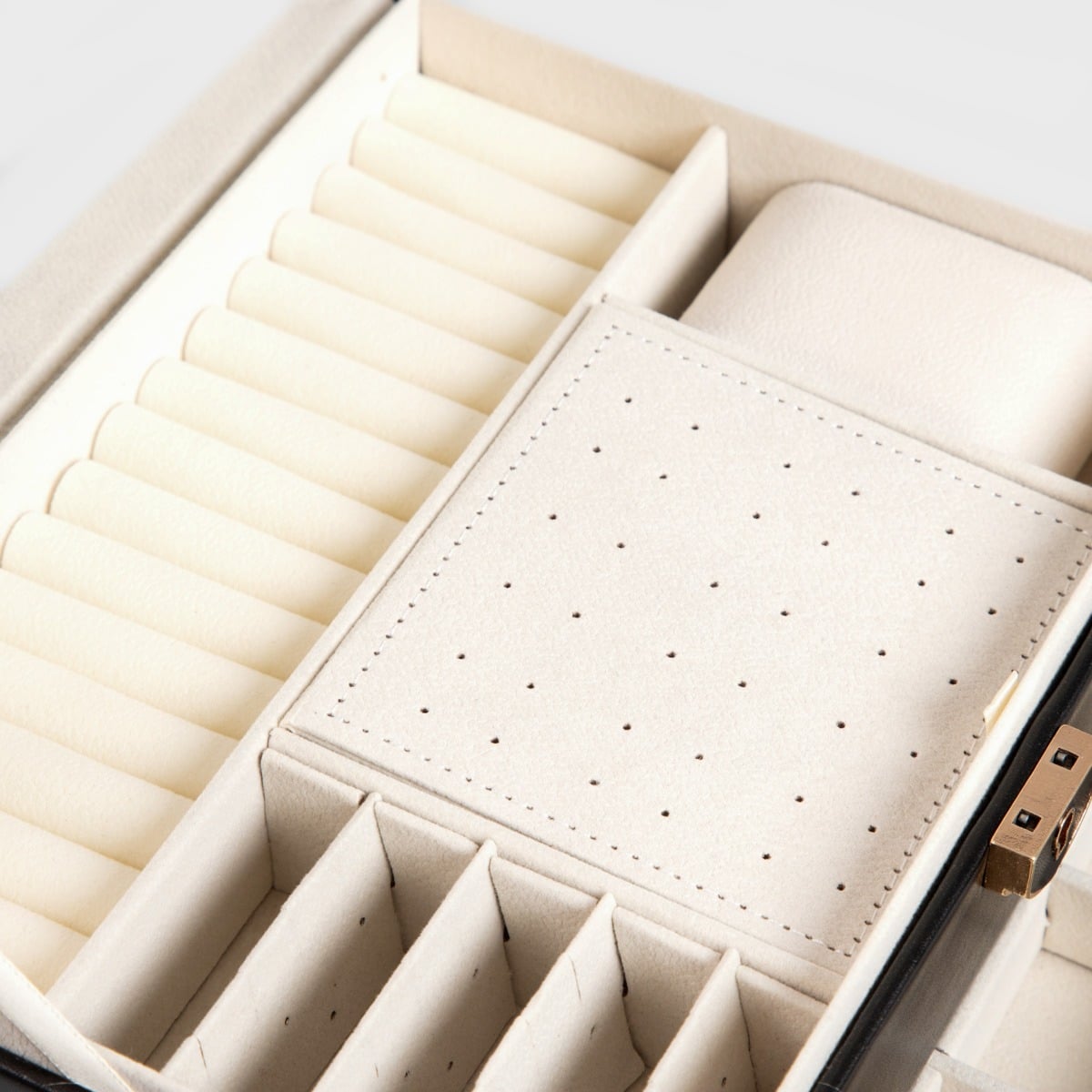 Шкатулка идеально подходит для повседневного хранения украшений дома или в качестве элегантного органайзера для выездов на природу. Она также станет прекрасным стильным подарком для близкого человека.