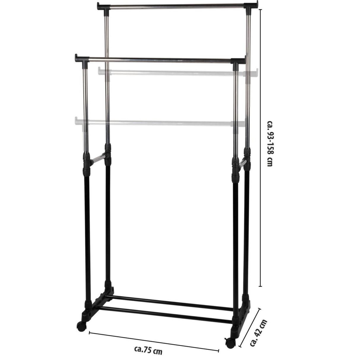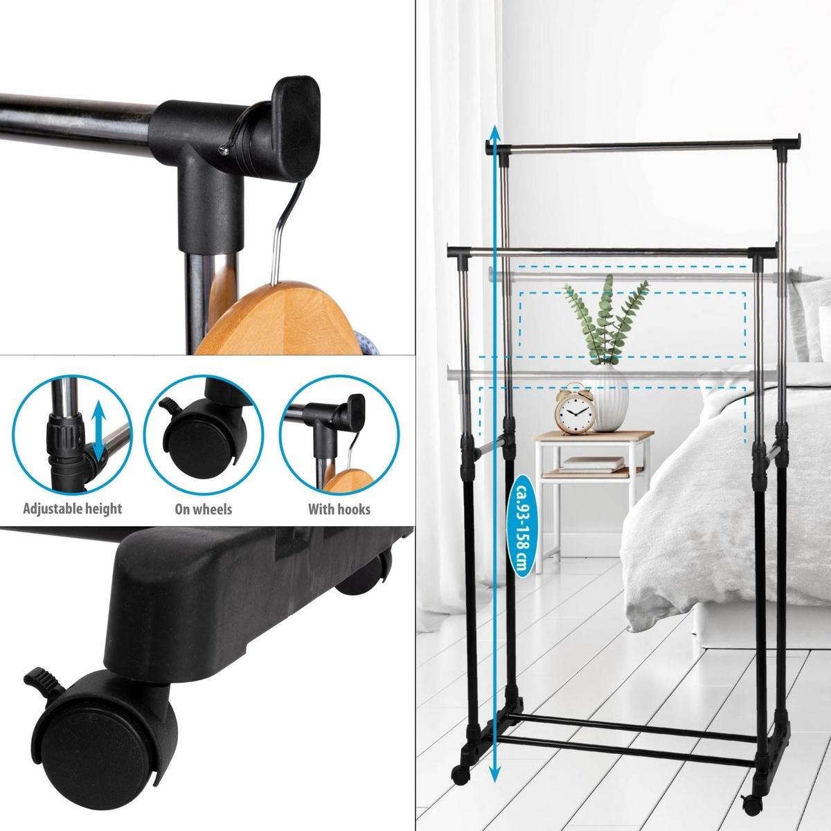 Две штанги позволяют удобно сортировать одежду — например, по типу, цвету или владельцу. Это облегчает повседневный выбор нарядов.