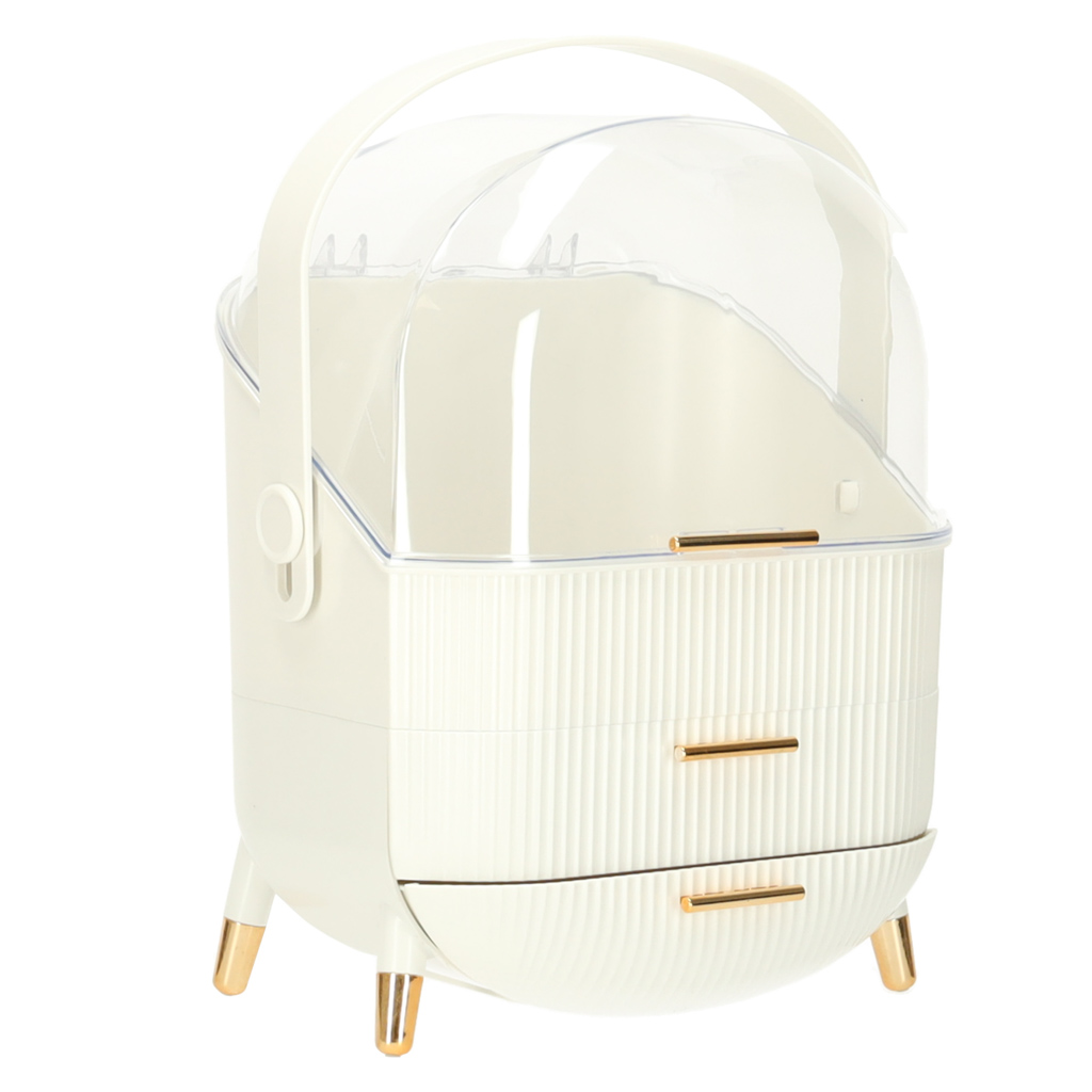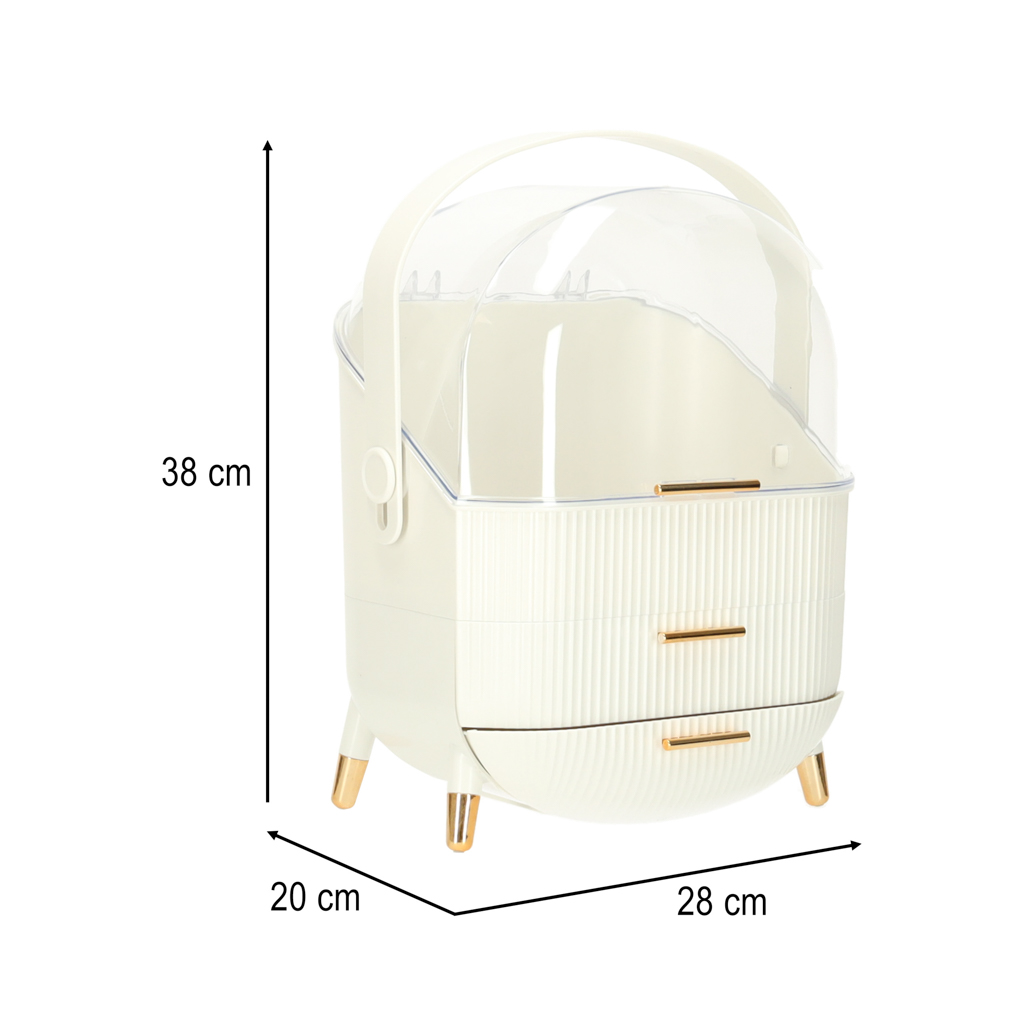 Элегантная форма сундука с прозрачной крышкой — стильно выставляет косметику и одновременно защищает ее от пыли
