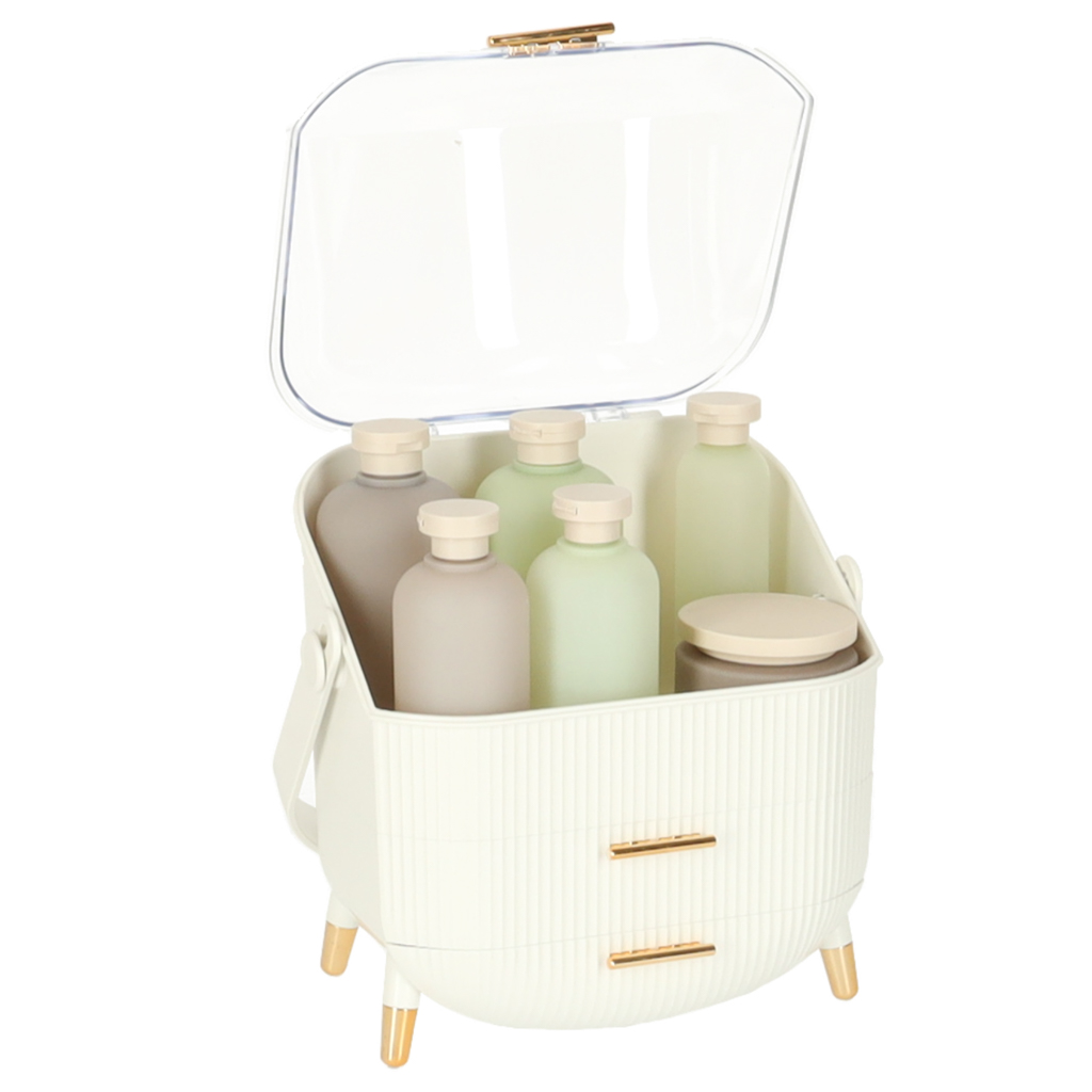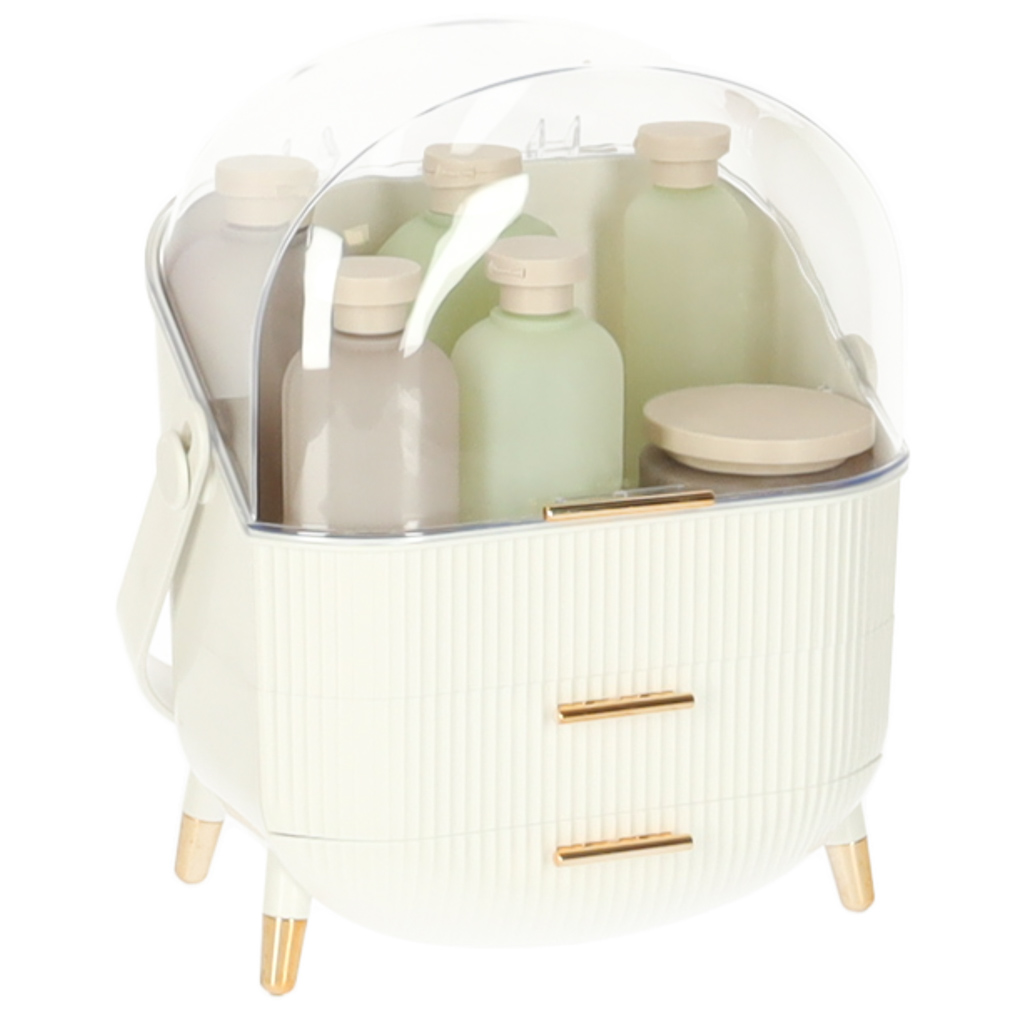 Этот контейнер-органайзер создан для тех, кто хочет держать все свои косметические принадлежности под рукой и в идеальном порядке. Благодаря прозрачной крышке и двойным ящикам вы сможете легко хранить косметику для ванной комнаты, а также украшения, кисти, кремы или безделушки для макияжа.