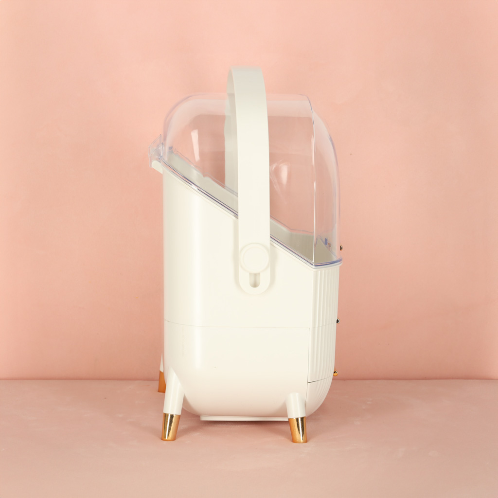 Познакомьтесь с уникальным органайзером для косметики с выдвижными ящиками, который изменит ваш распорядок дня. Это не просто практичный аксессуар — это стильная шкатулка для косметики, идеально соответствующая эстетике современных интерьеров. Благодаря выдвижным ящикам и удобнойручке она также выполняет функцию сундука-органайзера, который вы можете легко переносить куда угодно.