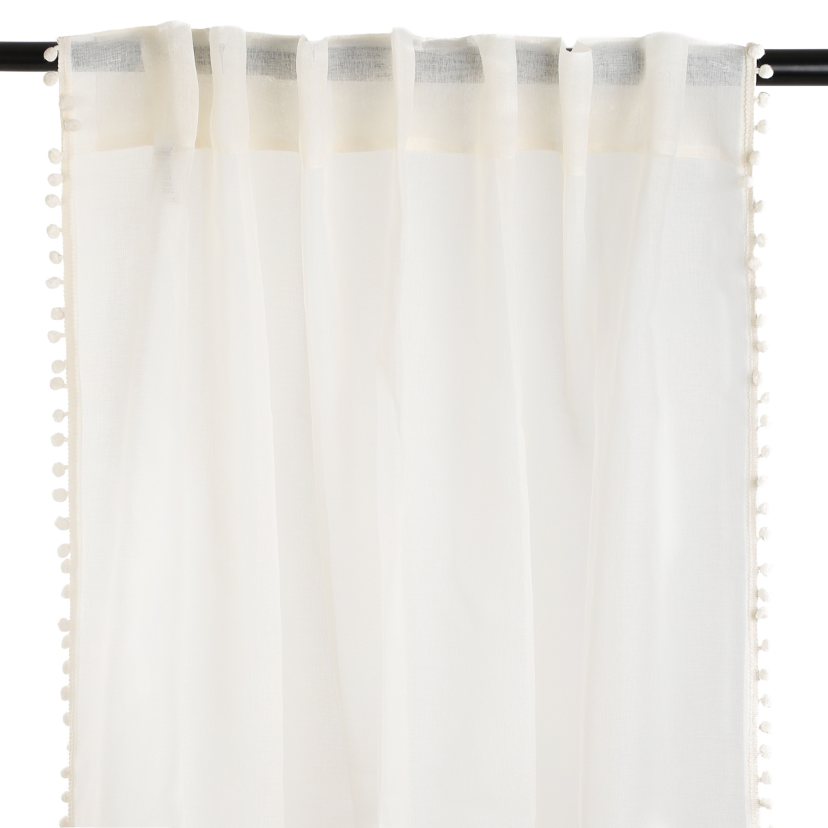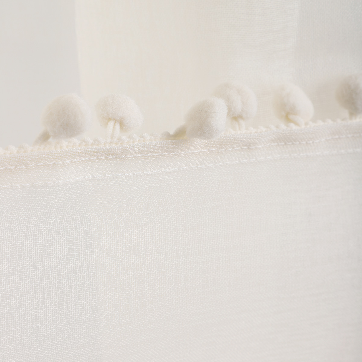 Штора кремового цвета с помпонами 140х250 см
