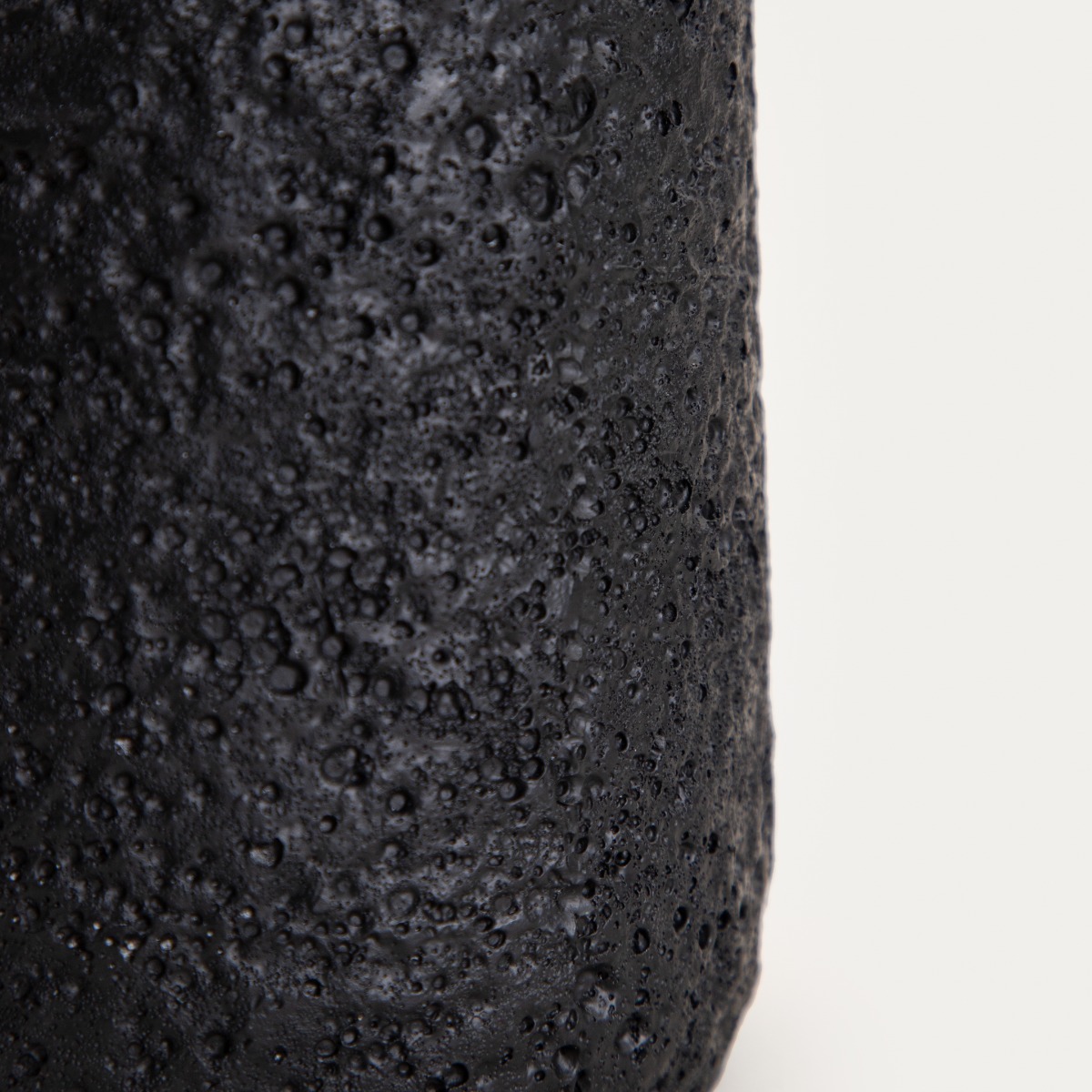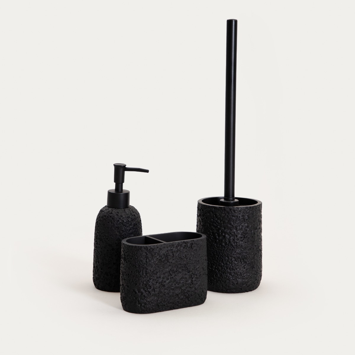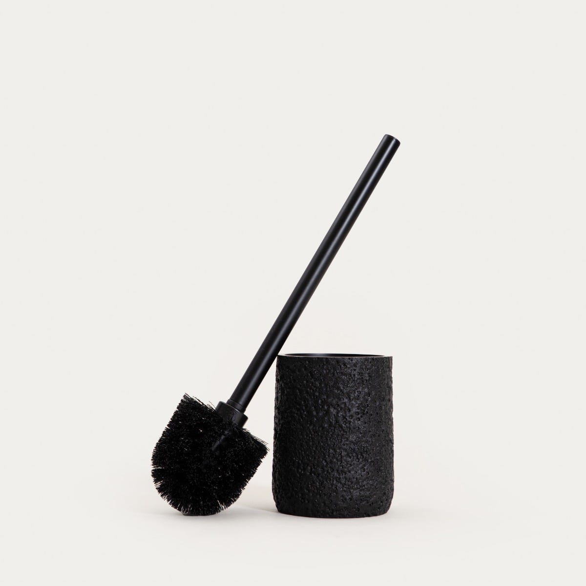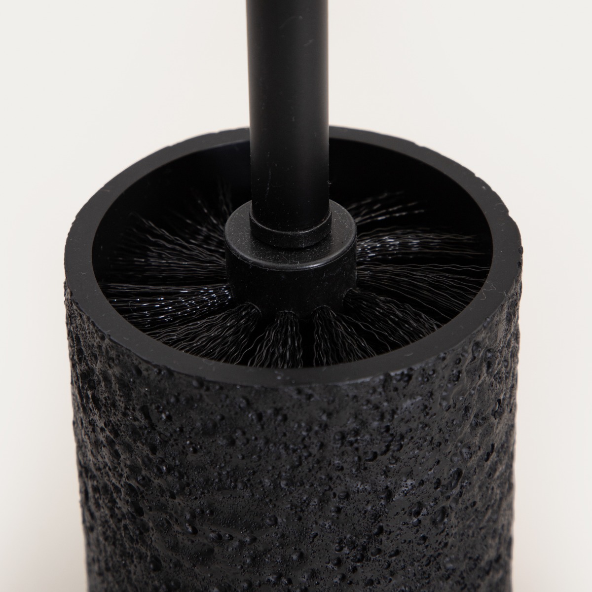 Щетка для туалета VOLCANO black 10x13x36,5 см изготовлена из полирезина — смеси полиэфирных смол с каменной и керамической мукой. Материал легче керамики, но заметно тяжелее пластика, что обеспечивает устойчивость во время использования. Щетина щетки представляет собой прочный пластик, устойчивый к влаге и интенсивной эксплуатации.
