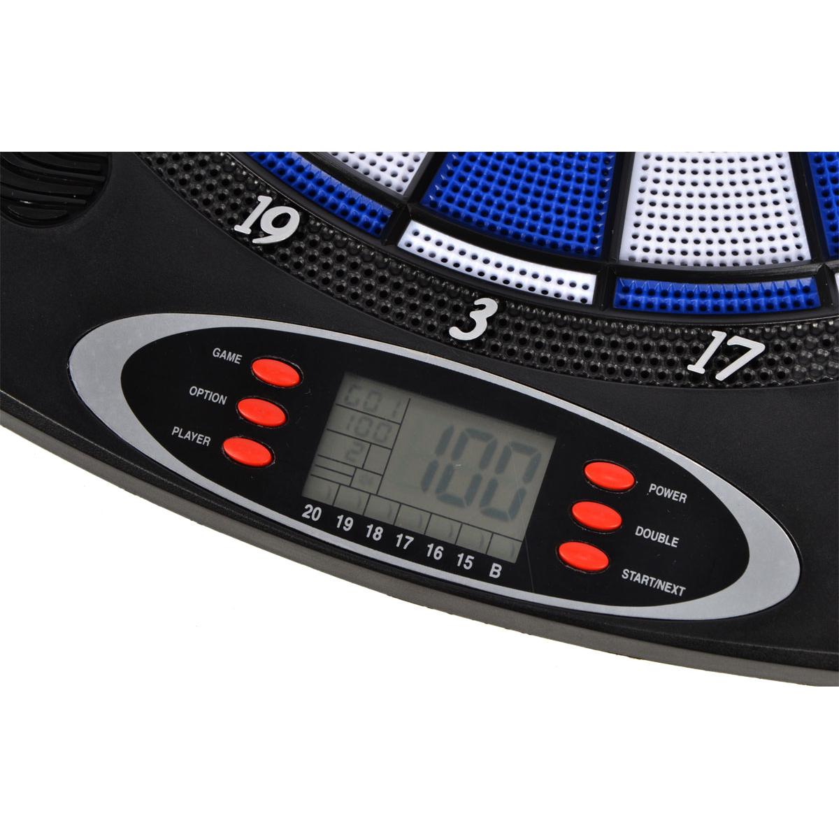 • доска для дартса оснащена ЖК-дисплеем, позволяющим следить за текущими результатами
