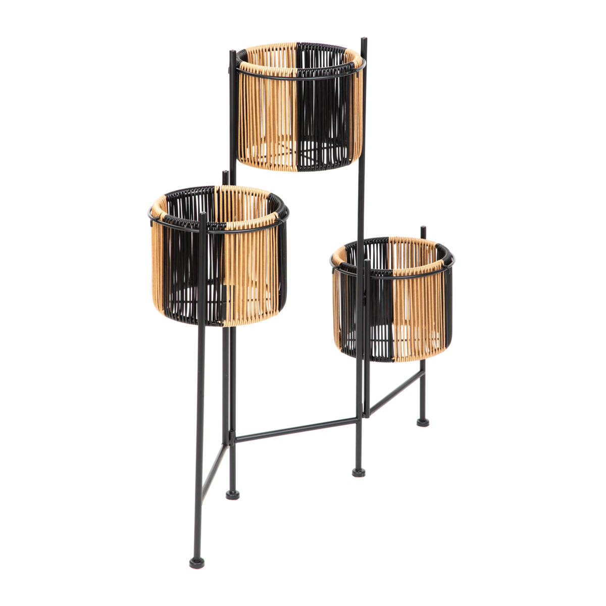 Ящик для цветов | FLOERO | с плетением бежевый и черный | 67x23x70 см | 876023