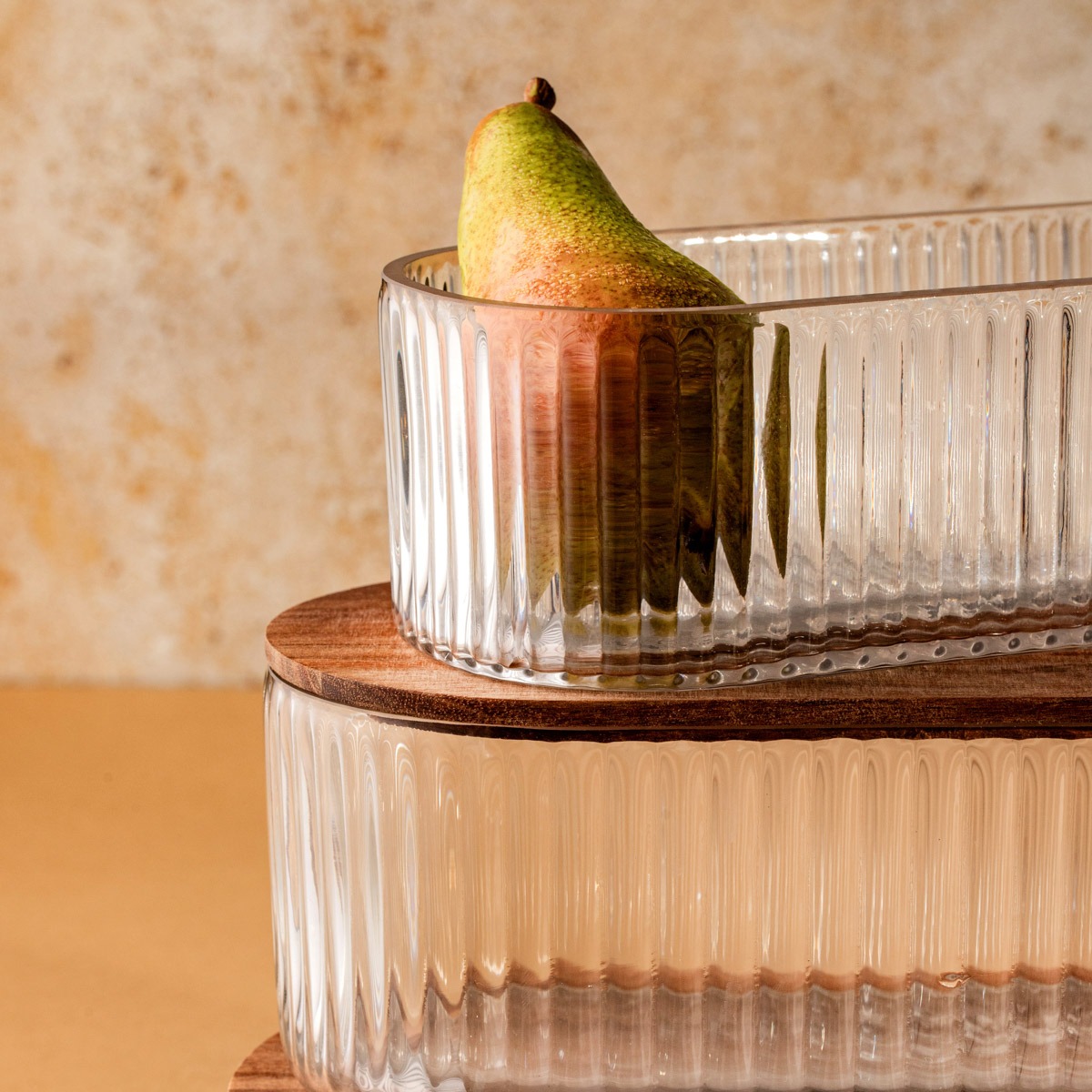 Ищете практичный и элегантный способ хранения больших объемов закусок, сладостей или специй? Контейнер BARDO — отличный вариант. Прочный стеклянный корпус позволяет легко видеть содержимое, а крышка из акации придает ему природное очарование и делает эстетически привлекательным. Благодаря сочетанию прочных материалов и продуманного дизайна он отлично подойдет как для повседневного использования, так и для элегантных посиделок за столом.