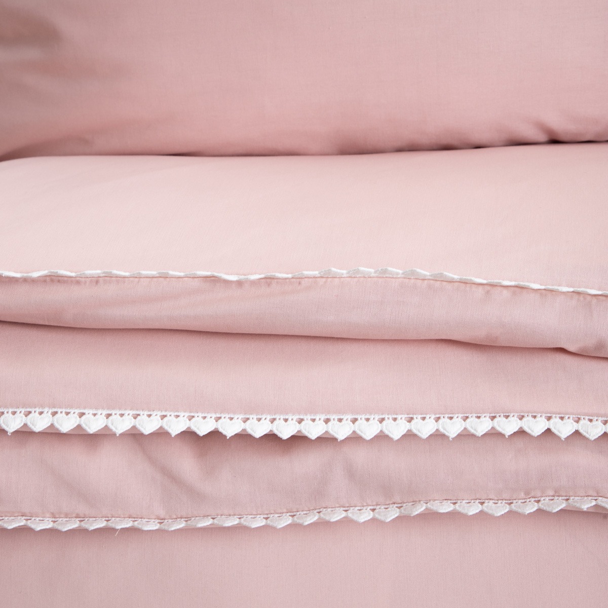 CHERISH LOVE | хлопковое розовое постельное белье с отделкой в виде сердец | 220×200 + 2*70×80 см | 767692
