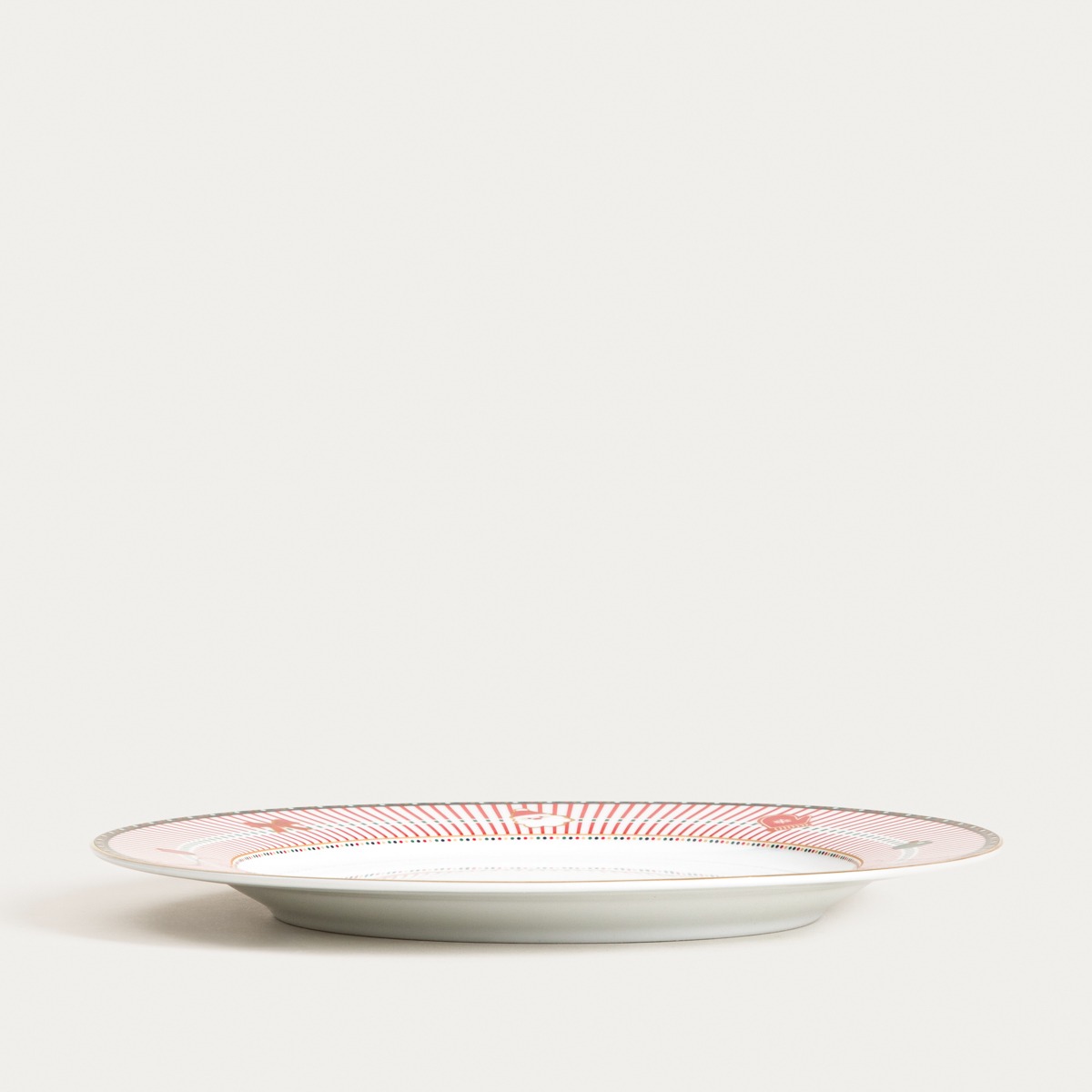 Тарелка изготовлена из фарфора, который отличается прочностью и элегантным внешним видом. Тарелку следует мыть вручную. Не использовать в микроволновой печи.