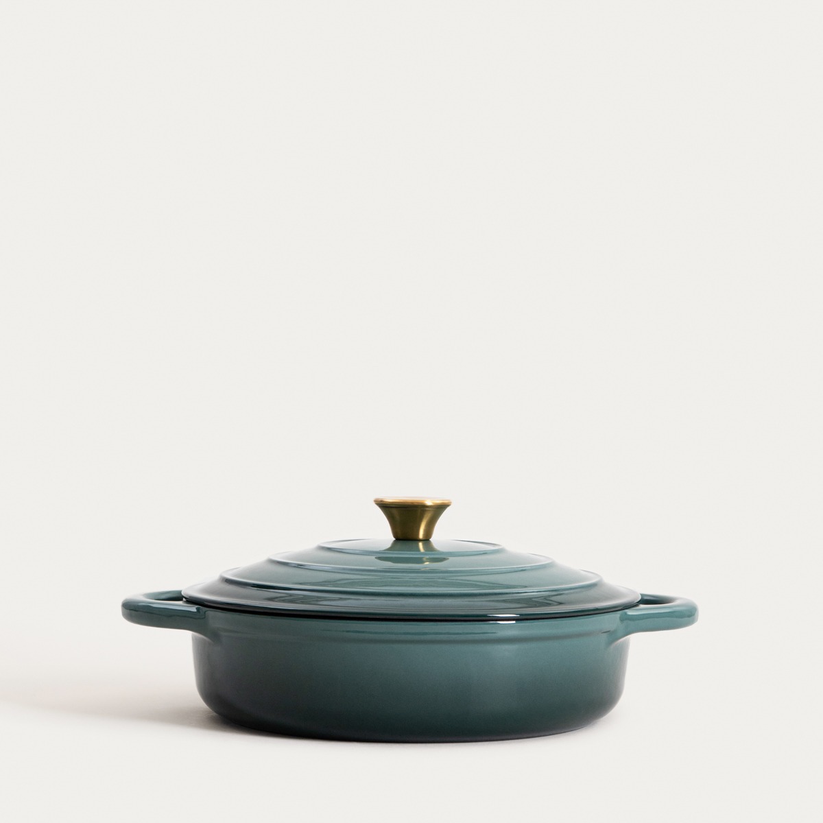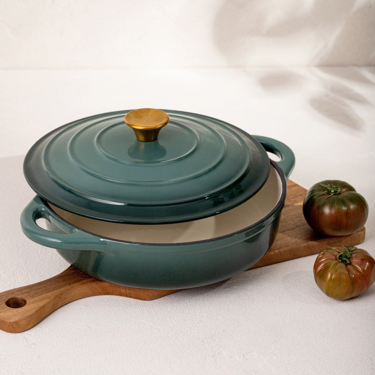 Плоскаякастрюля ANDREAS подходит для приготовления блюд в одной кастрюле, запеканок, тушеных овощей и мяса. Широкая поверхность облегчает равномерное распределение ингредиентов, а чугун поддерживает стабильную тепловую обработку. Вы можете использовать его в духовке при температуре до 220°C, что позволяет удобно запекать и доготавливать блюда в одной посуде.