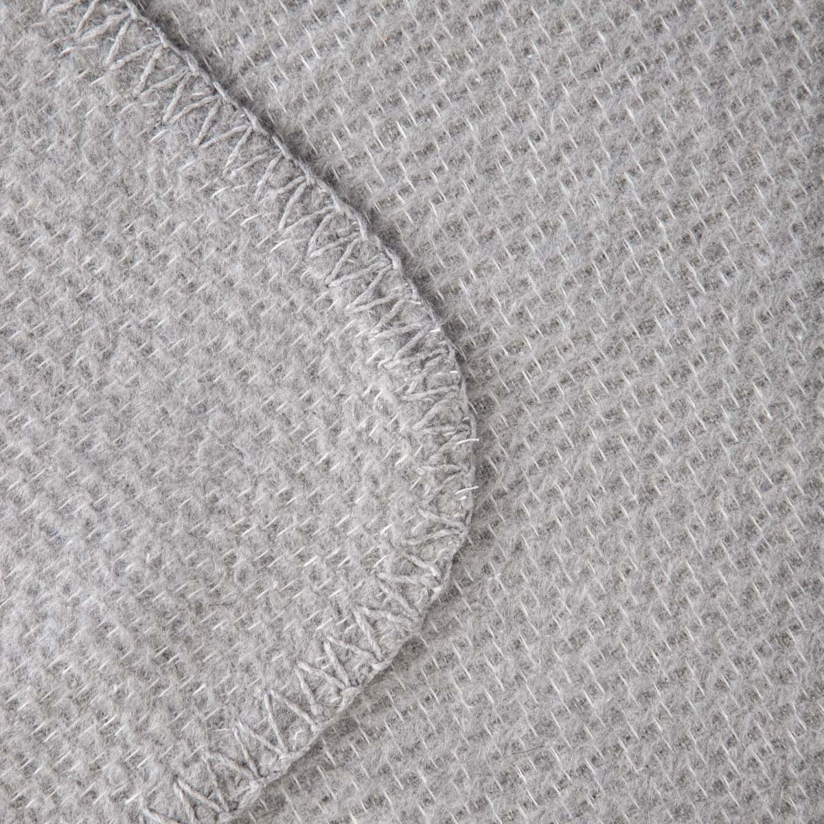 Толстое серое одеяло MALLOW с декоративной текстурой 150×200 см изготовлено из смеси хлопка, акрила и полиэстера плотностью 330 г/м². Сочетание этих волокон обеспечивает мягкость на ощупь и хорошую теплоизоляцию.