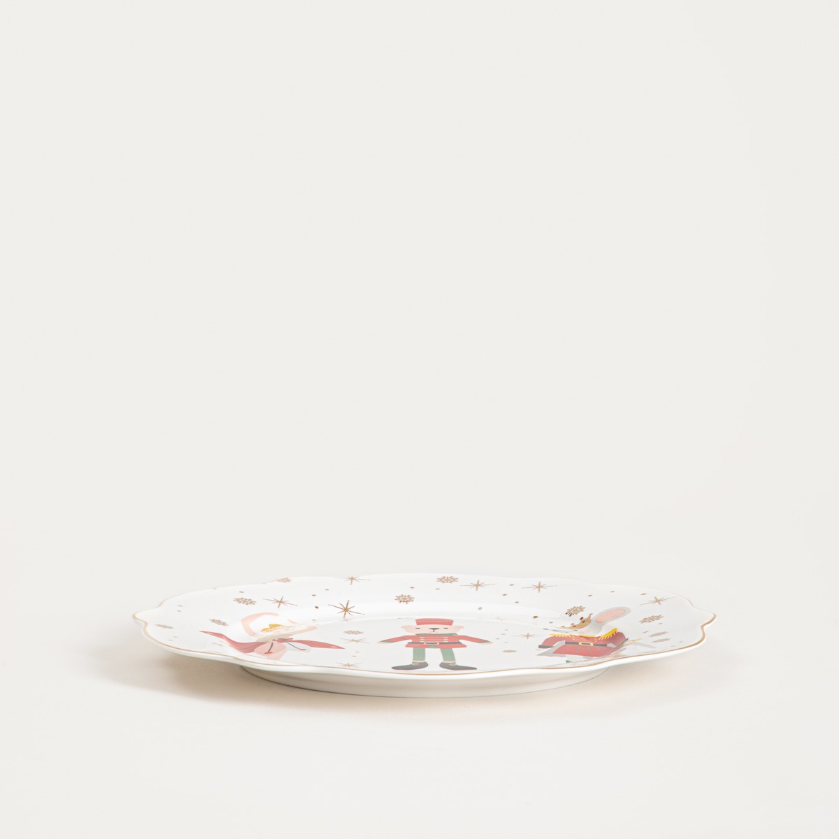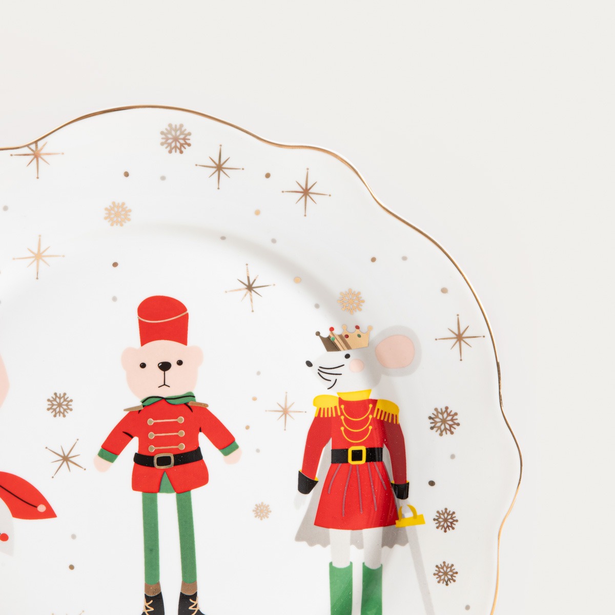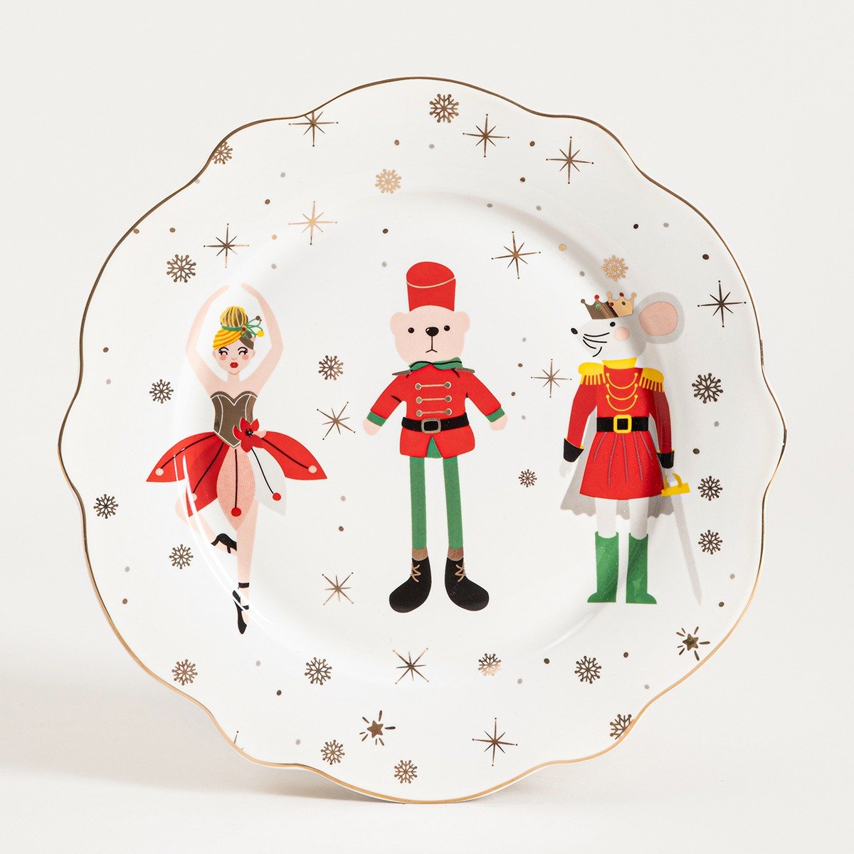 Тарелка украшена мотивом с изображением персонажей из сказки «Щелкунчик» — балерины, мишки и мышки. Это красивая тарелка, которая идеально подойдет для вашего рождественского стола. Фарфоровая тарелка выглядит очень элегантно, а ее оригинальный декор придаст очарование вашей столовой.