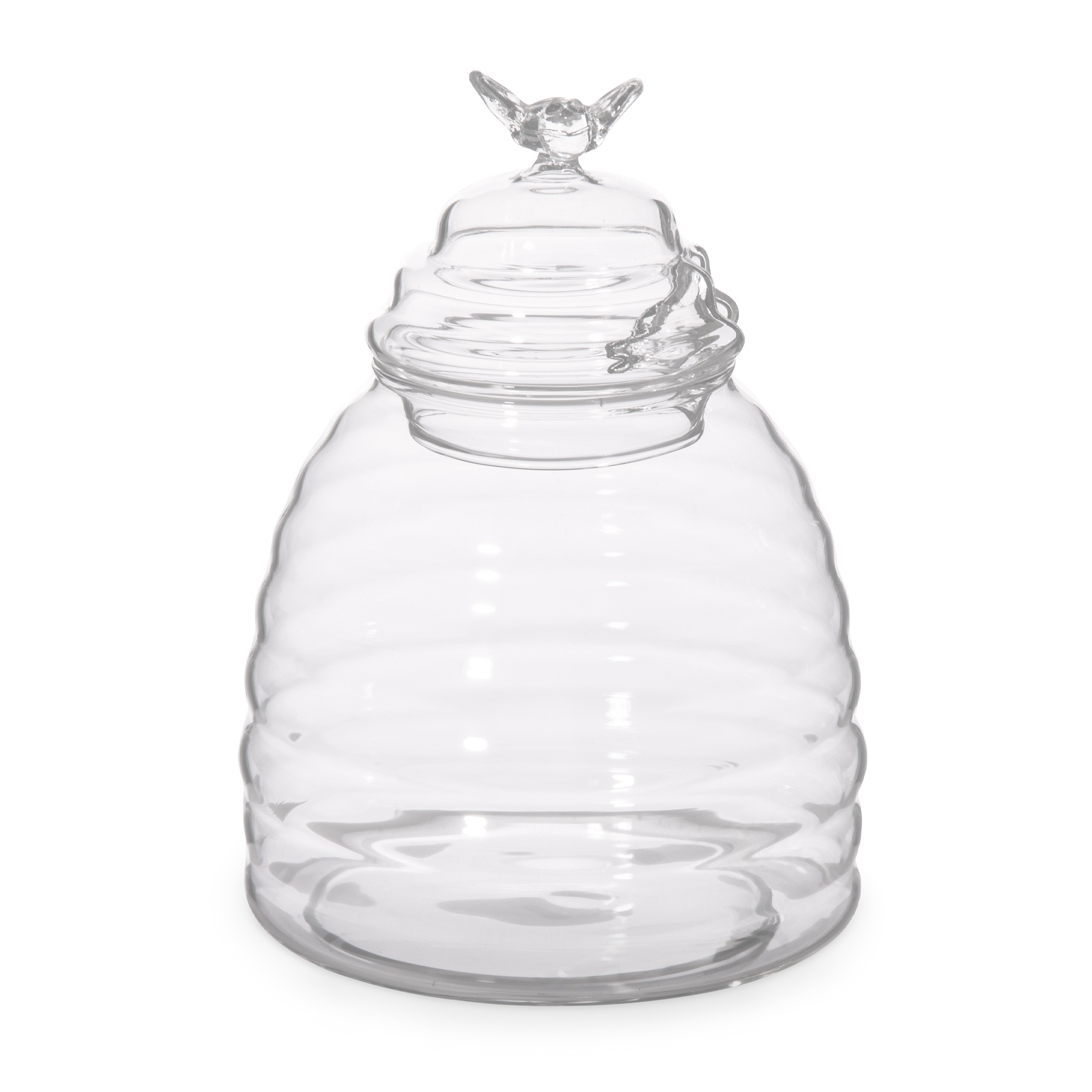 Изделие состоит из трех частей, первая из которых — крышка, позволяющая закрывать кувшин. Следующая часть — собственно, контейнер (банка). В дополнение к покупке мы получаем деревянную ложку для меда. Конструкция банки состоит из колец, расширяющихся ко дну. Общий объем составляет 0,46 литра.