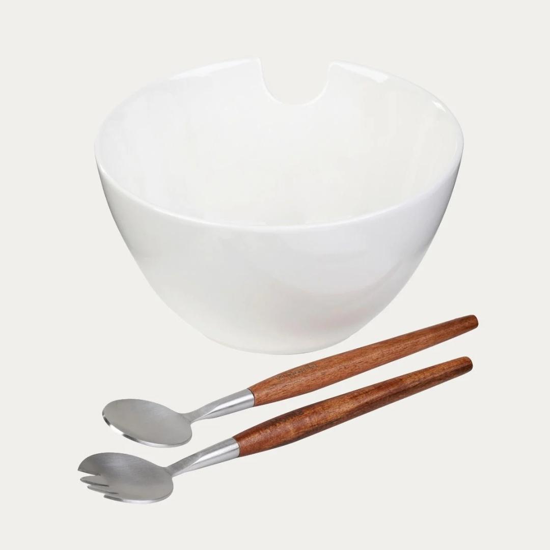 Материалом для изготовления салатника с посудой MOOKA послужили фарфор, дерево и нержавеющая сталь. Фарфор — это высококачественное сырье, характеризующееся, например, низкой теплопроводностью. Дерево и металл — материалы с высокой устойчивостью к механическим повреждениям.