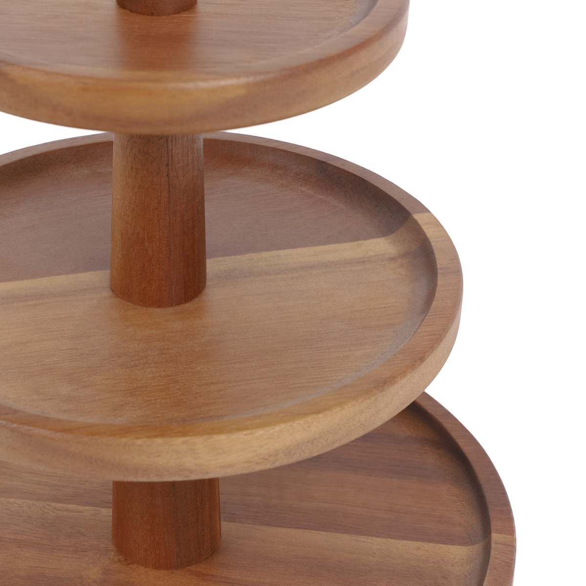 Издавна тарелки использовались для подачи вкусных закусок на посиделках с семьей или друзьями. Интересной альтернативой традиционным сервировочным блюдам из стекла или пластика являются все чаще появляющиеся деревянные блюдца. Блюдо ACACIA имеет 3 яруса из древесины акации, что позволяет разместить на нем большое количество деликатесов, которые благодаря ярусной структуре блюда становятся более заметными и легкодоступными. Благодаря натуральному дизайну блюдо прекрасно смотрится на любом столе.