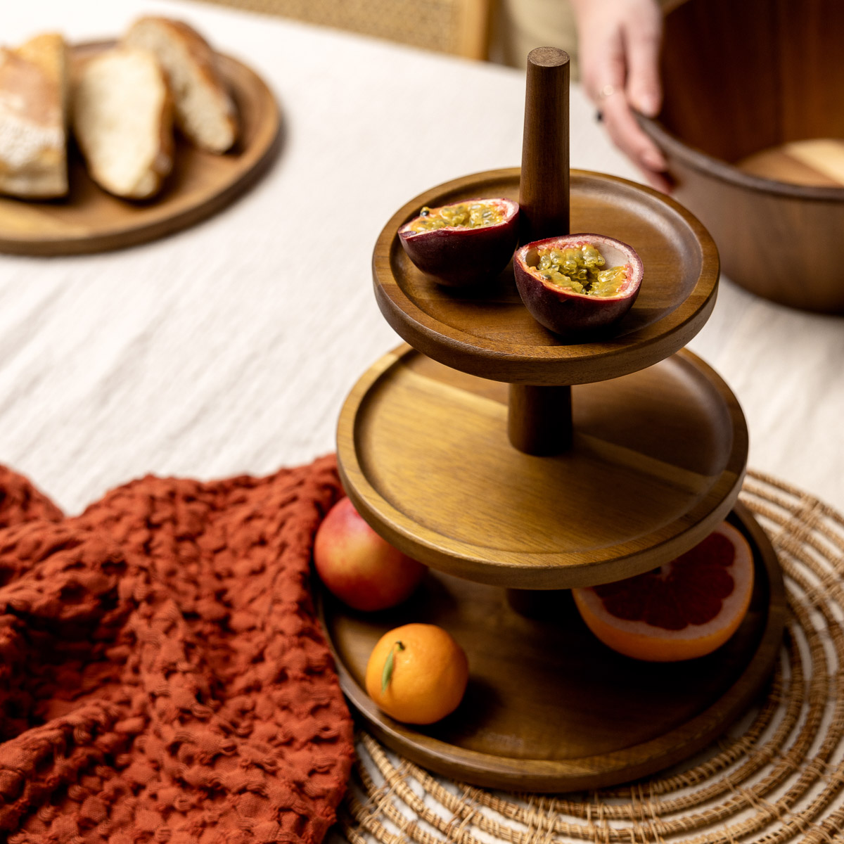 Трехъярусное деревянное сервировочное блюдо