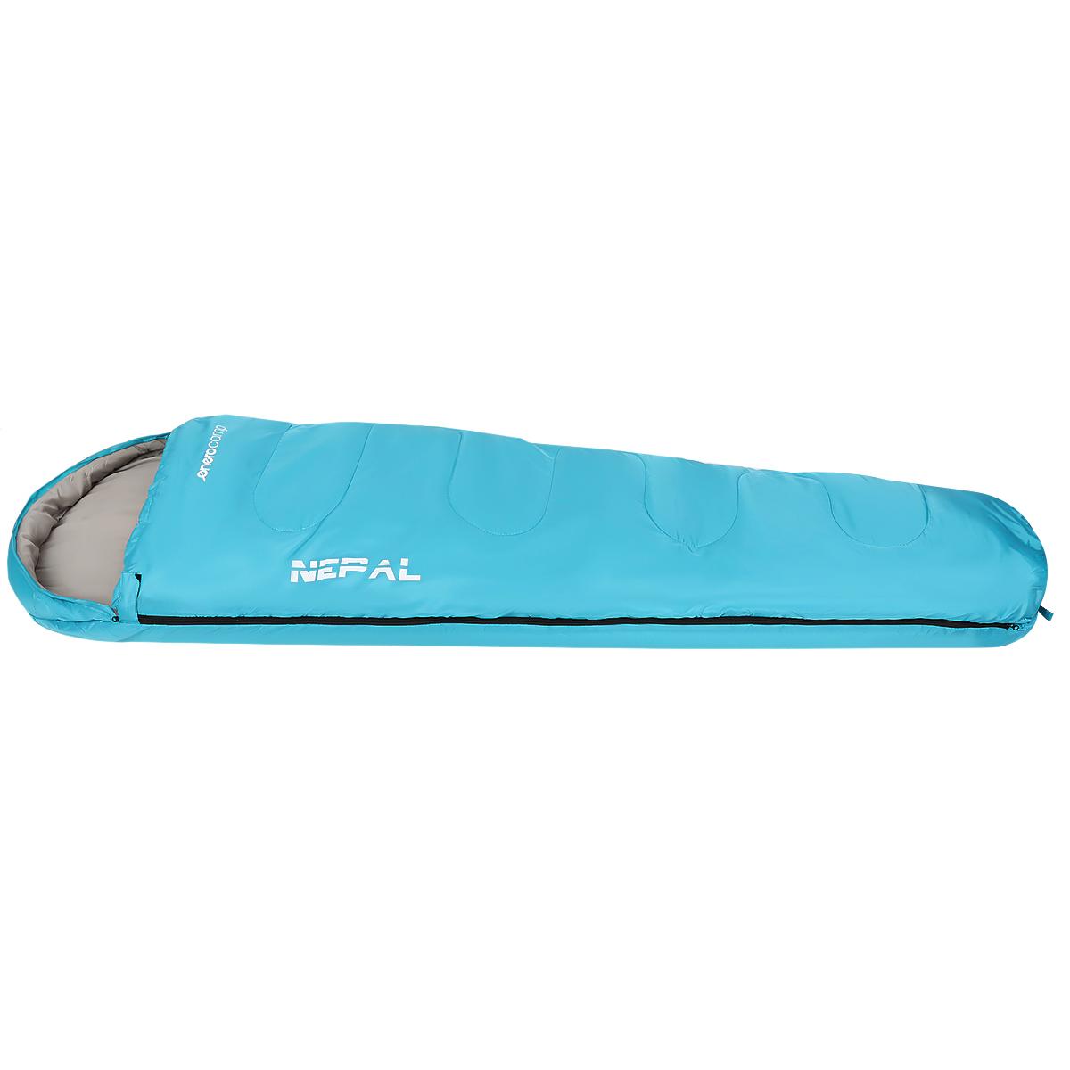 NEPAL COMPRESSION TURISTIC SLEEPAL 210X80/50CM BLUE ENERO CAMP — практичный спальный мешок в форме конусообразной мумии. Он отлично зарекомендует себя в школьных поездках, походах, лагерях и семейных прогулках под тентом. Он наполнен специальным полиэфирным волокном 250 г/м2, которое не впитывает влагу, является антиаллергенным, быстросохнущим и легким, а специальная строчка по всей поверхности материала спального мешка предотвращает его смещение. Утягивающийся капюшон позволяет свободно регулировать его ширину и защищает голову от холода. Форма mummy дольше сохраняет тепло внутри и адаптируется к вашей фигуре. Двусторонняя молния с обеих сторон позволяет застегнуть спальный мешок в любой момент и застегнуть его изнутри. А благодаря специальному компрессионному чехлу вы можете свернуть его до минимального размера.