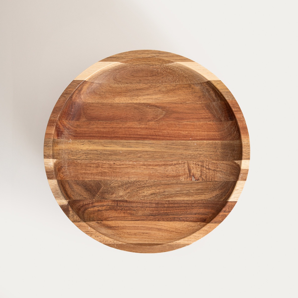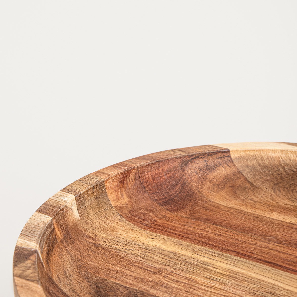 Блюдо изготовлено из натурального дерева акации. Каждый экземпляр может незначительно отличаться по оттенку и текстуре.
