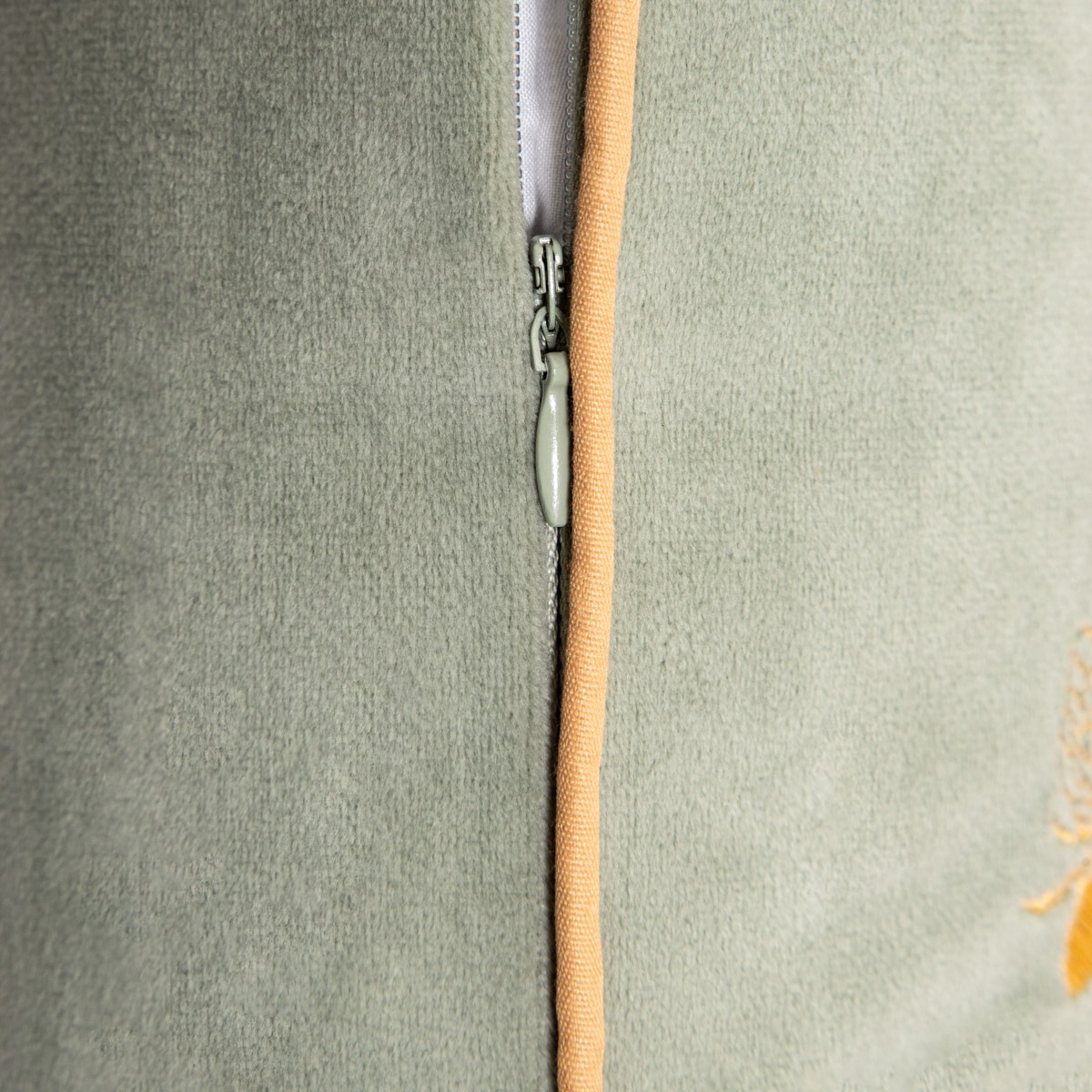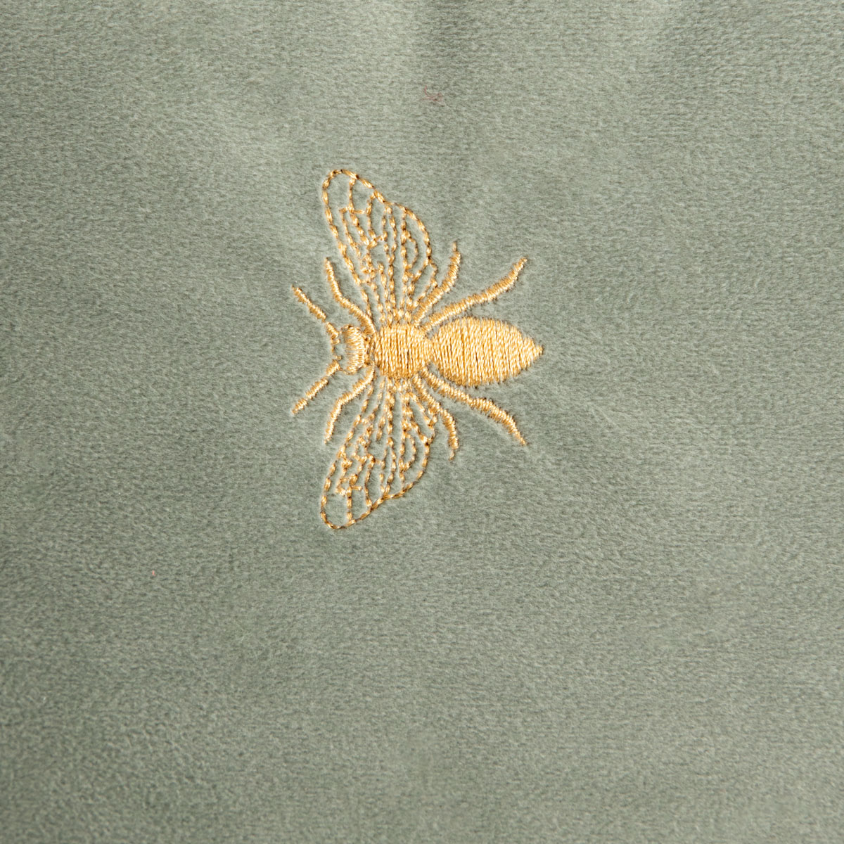 Poszewka | CAMILLA | welurowa pistacjowa z haftowanymi pszczołami | 45x45cm | 770029