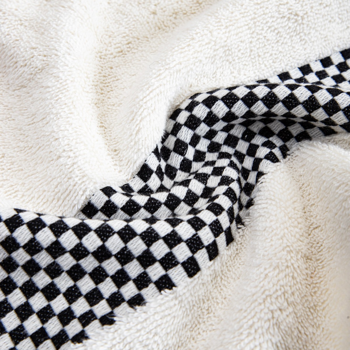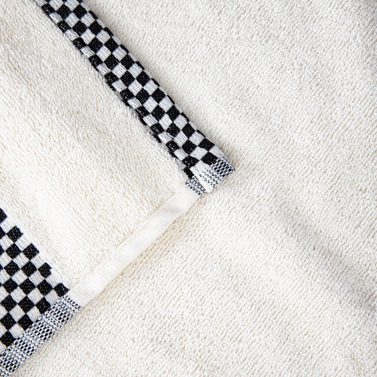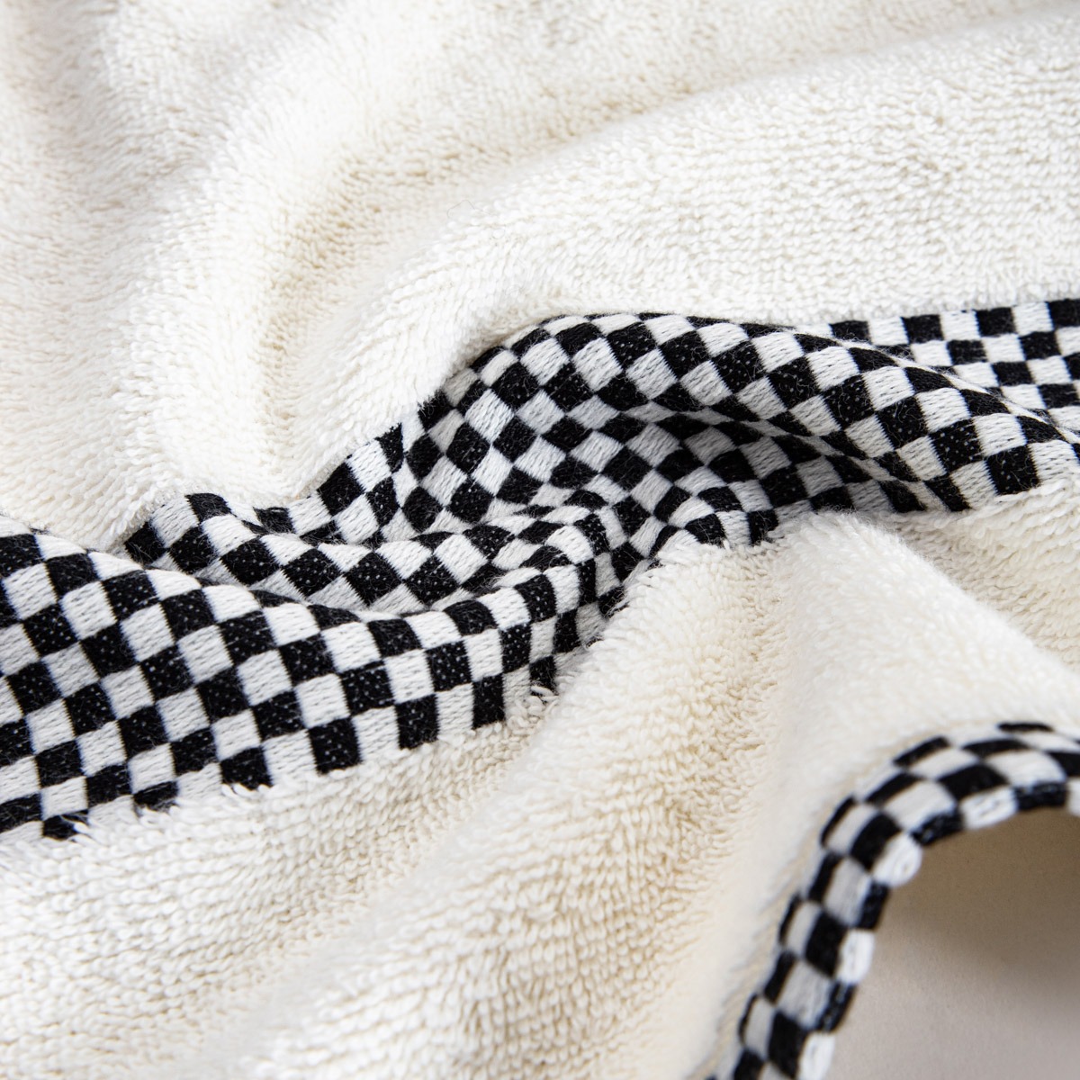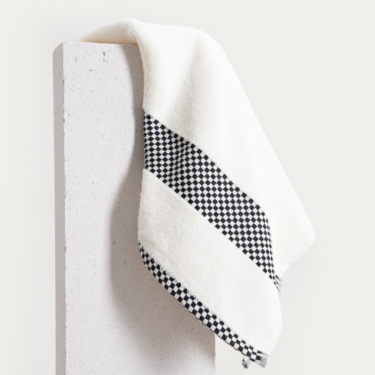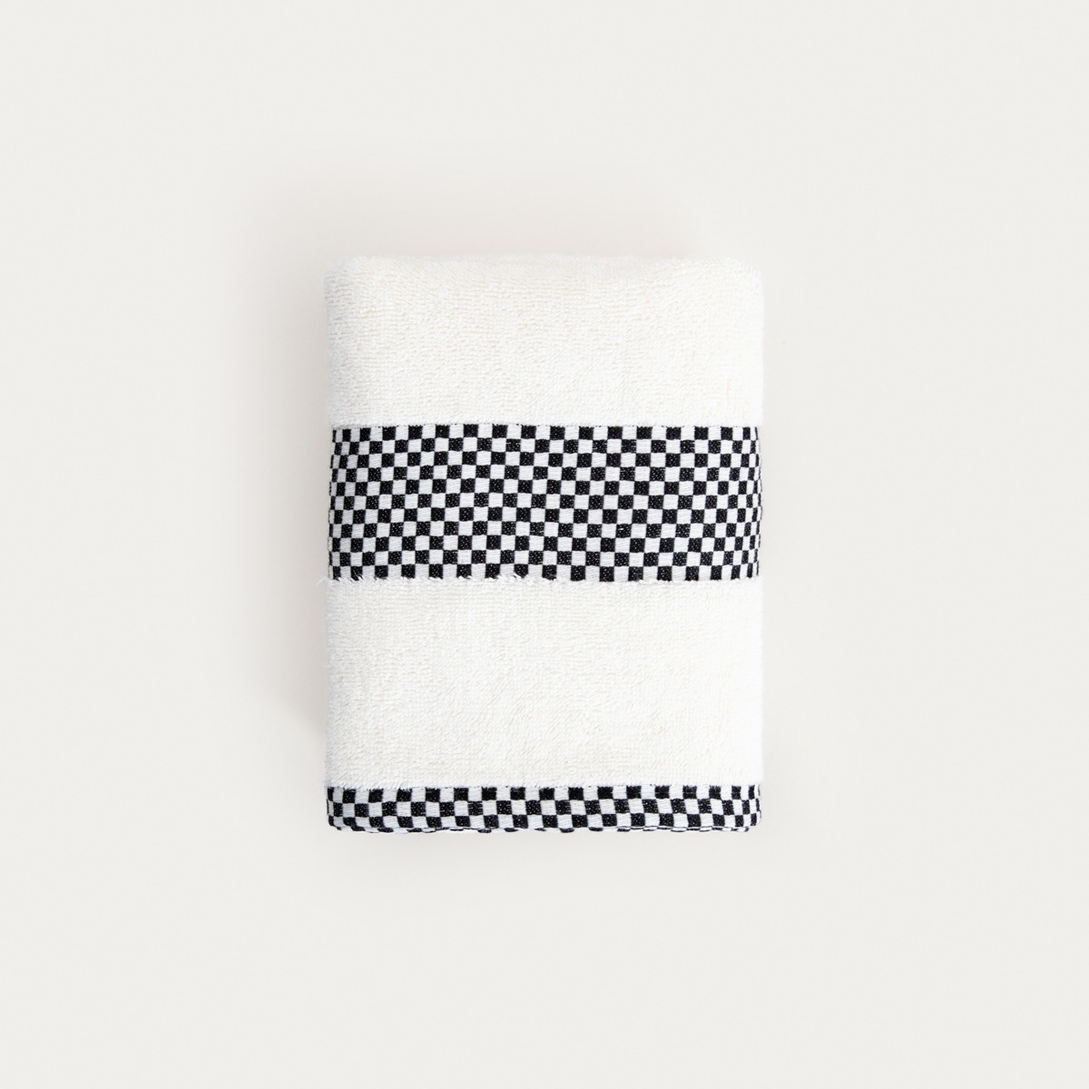 Полотенце TIVA отличается декоративным черным клетчатым узором, который придает ему характер и делает стильным акцентом в ванной комнате. Светлая основа в сочетании с контрастными деталями выглядит элегантно и вне времени, поэтому полотенце хорошо впишется в самые разные интерьеры. Мягкий хлопок дарит приятные ощущения после каждого использования, заботясь о комфорте вашей кожи.