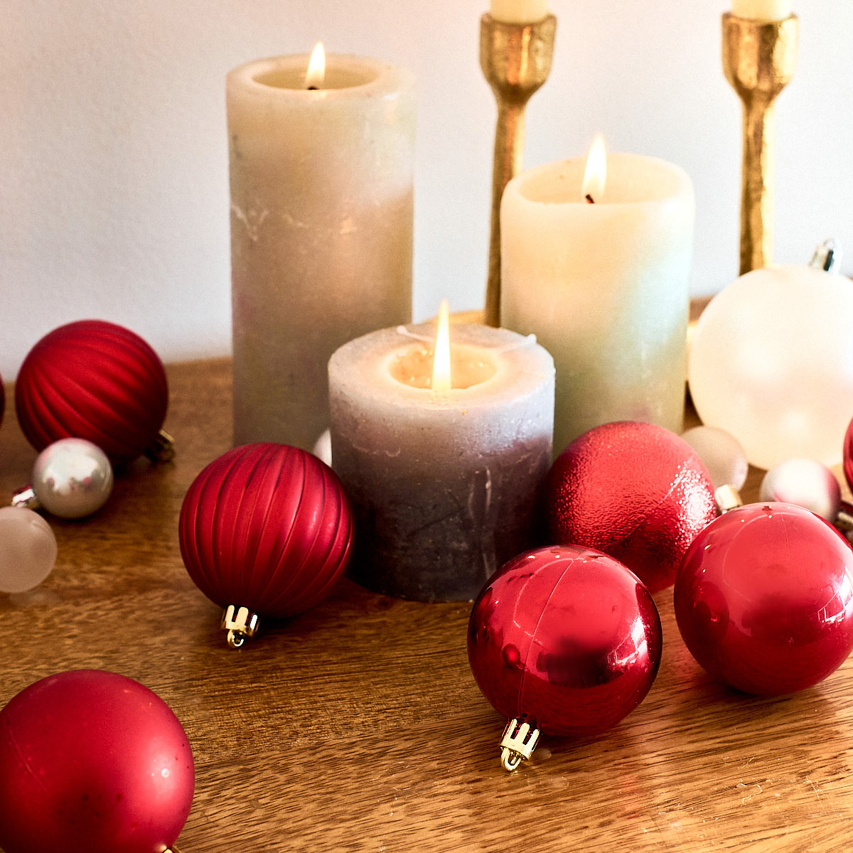 Создайте особую праздничную атмосферу с помощью этого набора елочных игрушек RIJA глубокого, элегантного красного цвета. Различные варианты отделки — от блестящей до матовой — придадут вашей елке неповторимый оттенок, независимо от того, предпочитаете ли вы классическую аранжировку или современный декор.