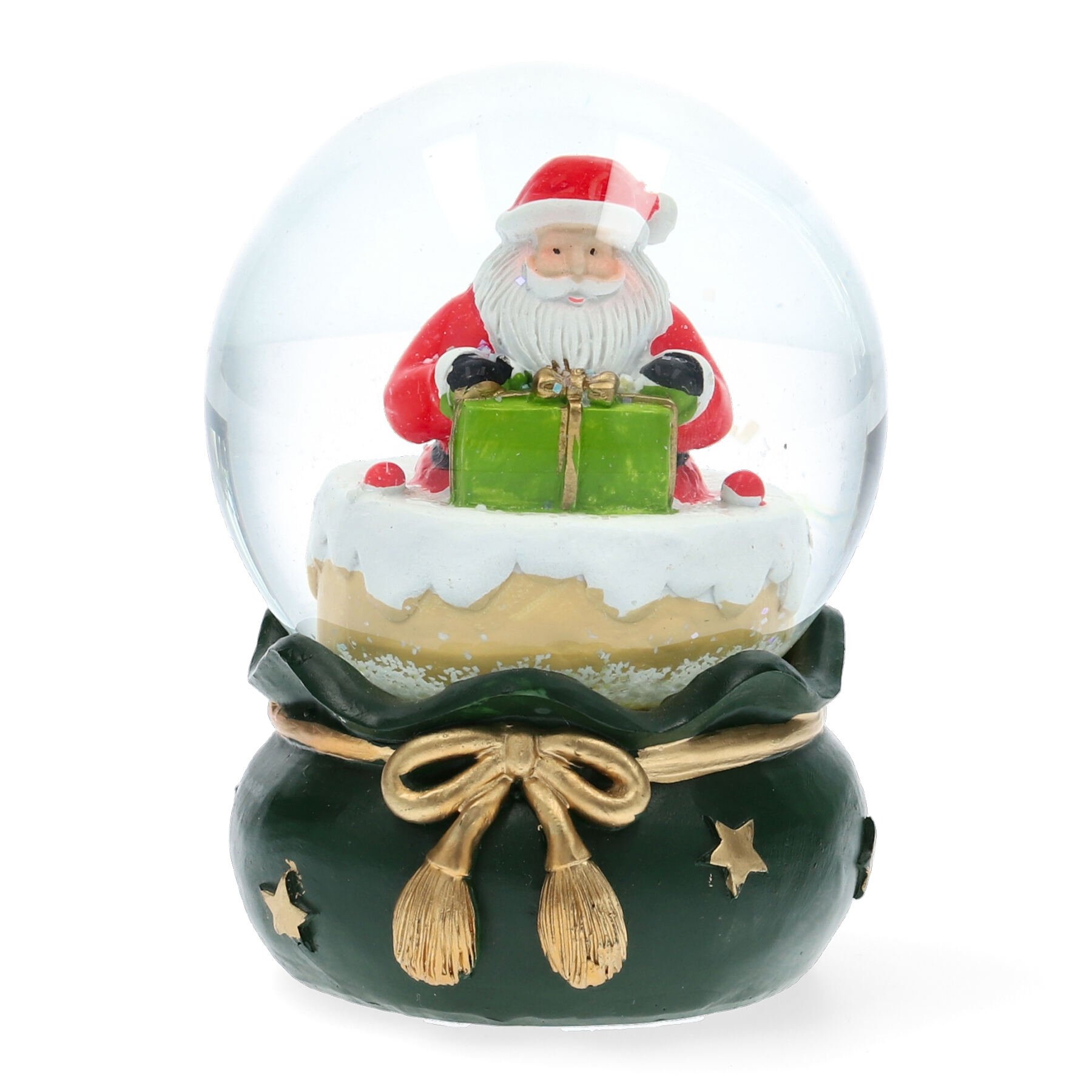 Снежный шар RONNIE, выполненный в цветовом трио: классический красный, бутылочно-зеленый и белый с золотыми аксессуарами, внесет разнообразие в ваш интерьер. Изделие выполнено в виде Санта-Клауса, помещенного в снежный шар, который излучает прозрачную побрякушку, в которой можно увидеть падающий снег. Все это расположено на подставке, которая удерживает все это. Это удивительное украшение, которое придает оригинальность.