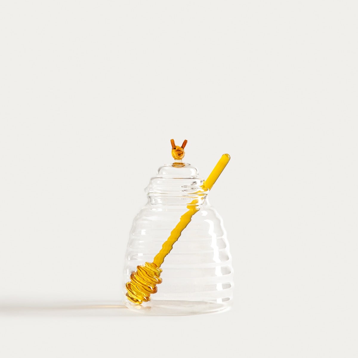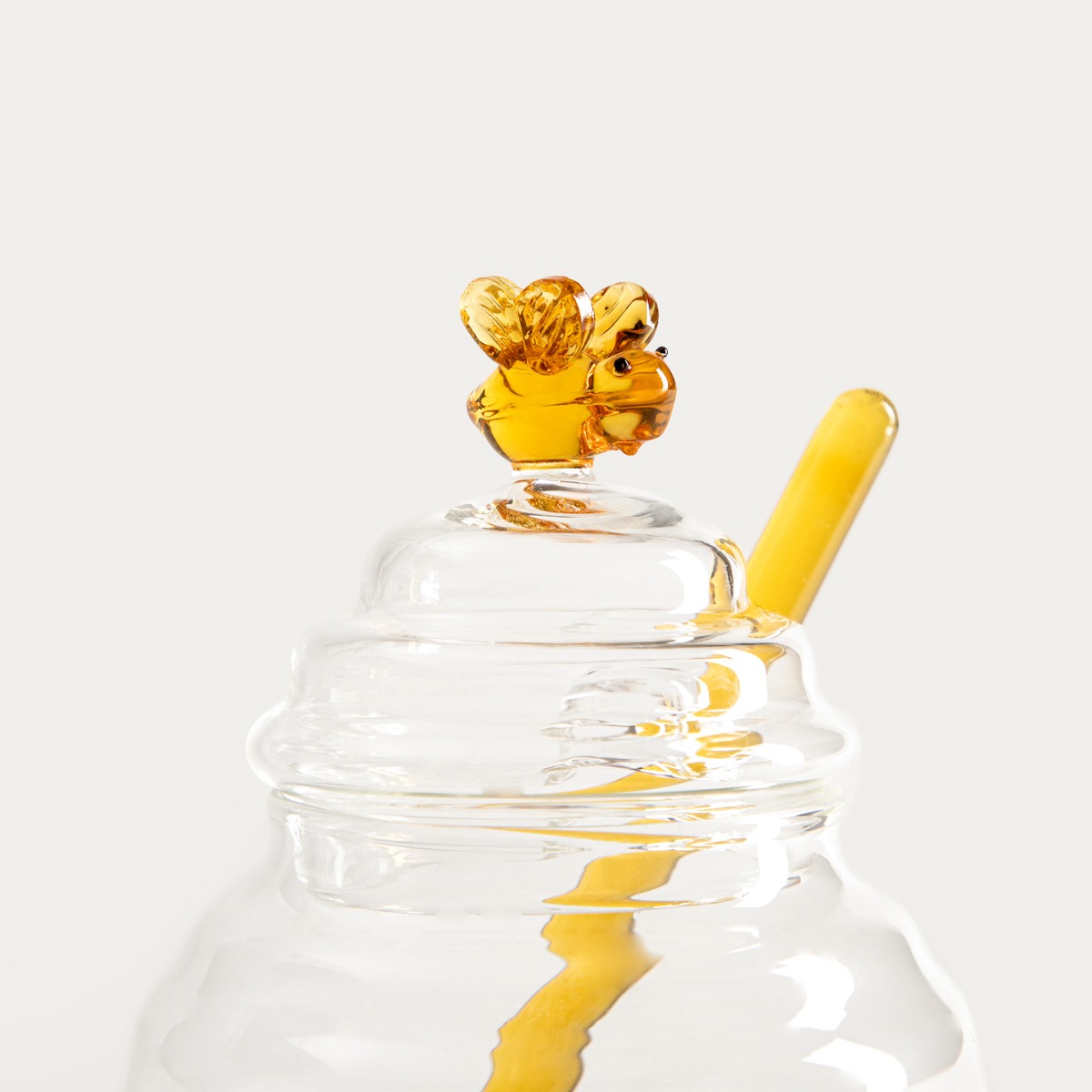 Стеклянный контейнер для меда сочетает в себе практичность и дизайн, который сразу поднимает настроение и ассоциируется со сладостью и неповторимым вкусом меда. Прозрачная форма раскрывает золотистый цвет, а продуманные детали делают даже простую трапезу особенной.