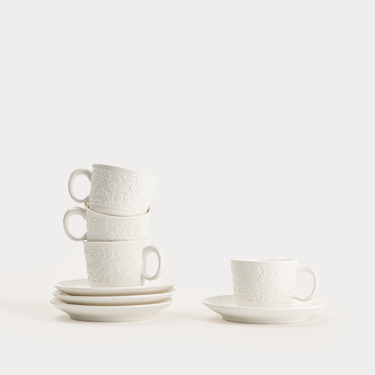 Чашки объемом 0,15 литра идеально подходят для подачи эспрессо, маленького кофе или чая. Блюдца позволяют удобно подать напиток и защищают поверхность стола.
